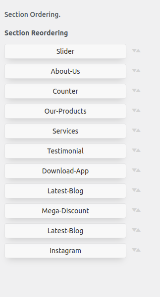 Section reordering means to arranage the section as per our requirement. first you need to choose section and drag section on top or bottom where you need it. when you will drap any section your front view will change according to your choice.