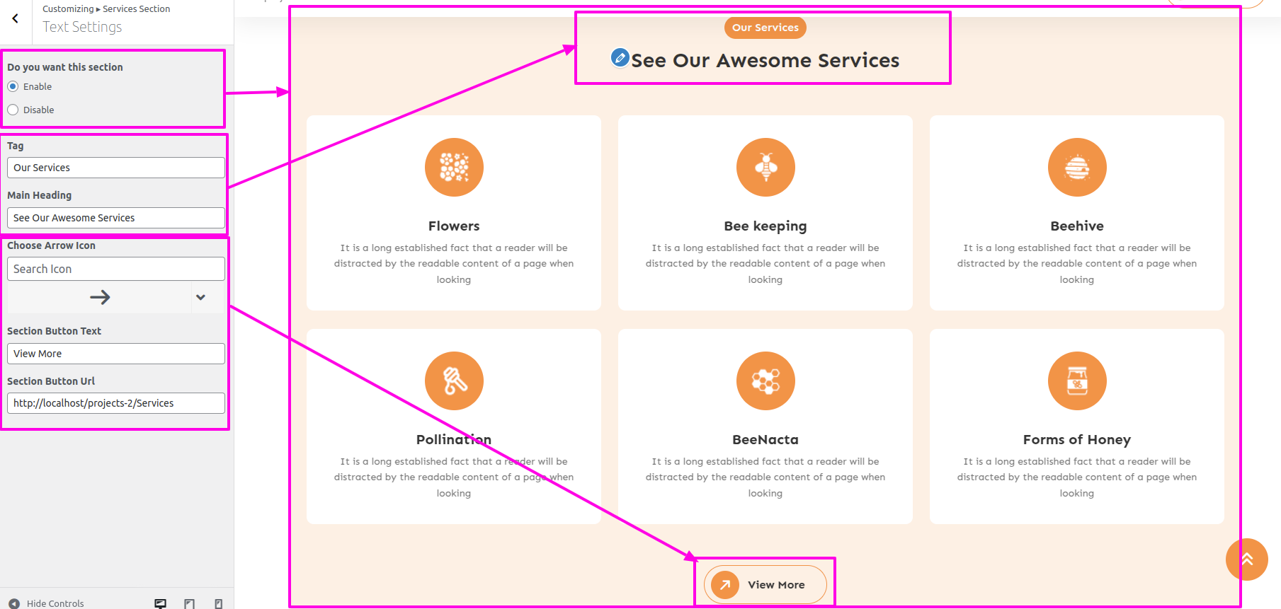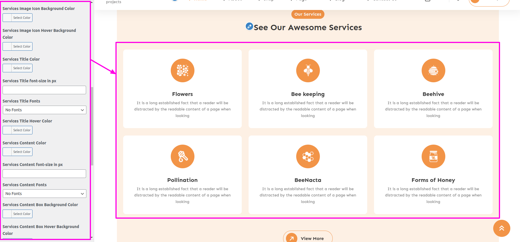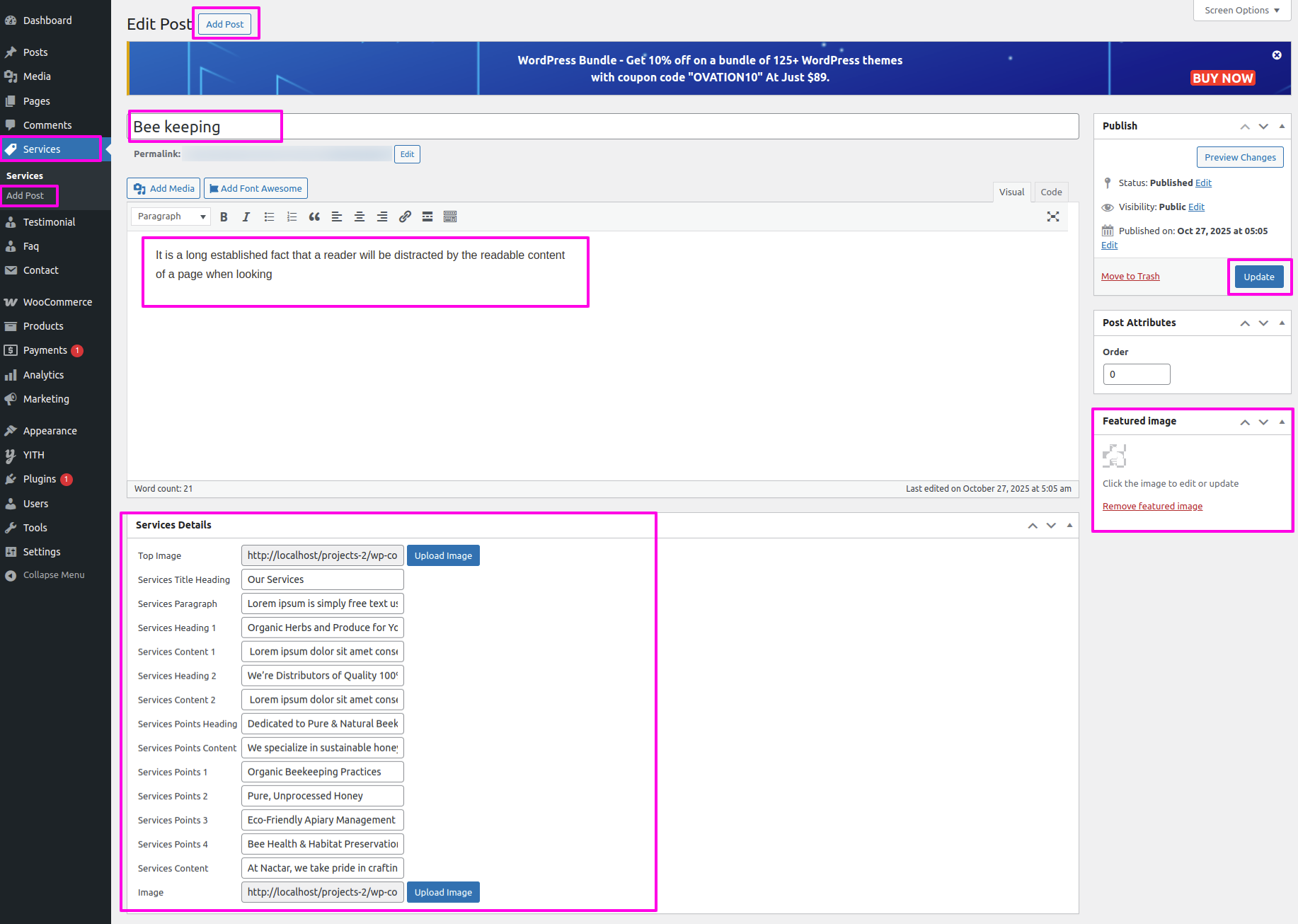 Installing and activating Honey Store Pro Custom Posttype Plugin is necessary for the Services section. A plugin. After activation, the Services section will appear in the dashboard.