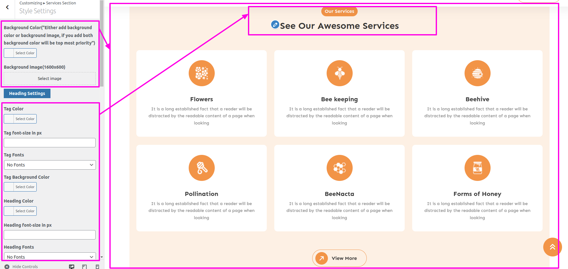 Select The Appearance → Select The Customize → Theme Settings → What We Do → Style Settings