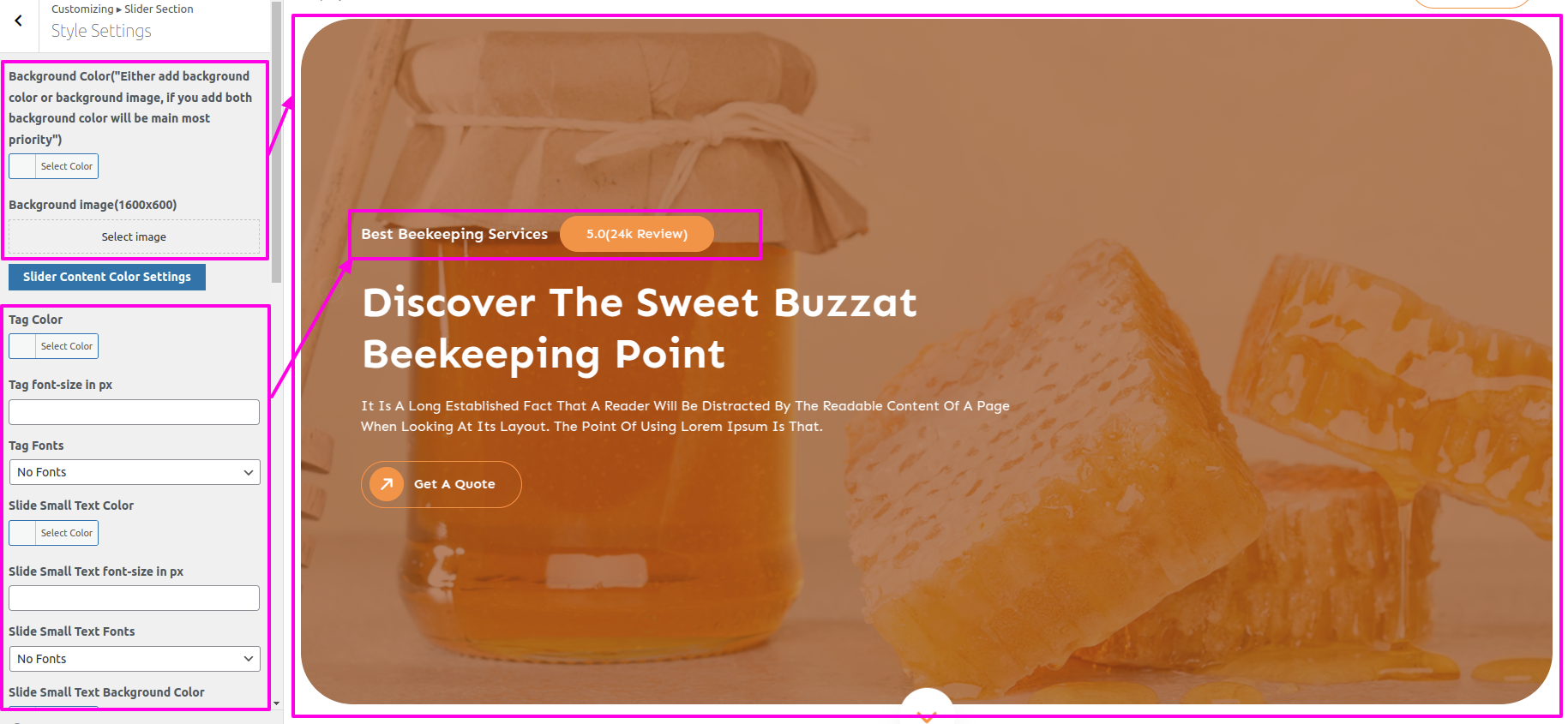 Select The Appearance → Select The Customize → Theme Settings → Slider→ Style Settings