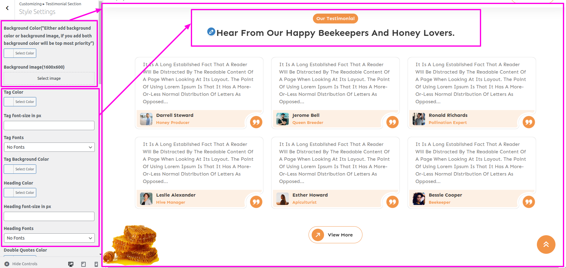 Select The Appearance → Select The Customize → Theme Settings → Testimonial→ Style Settings