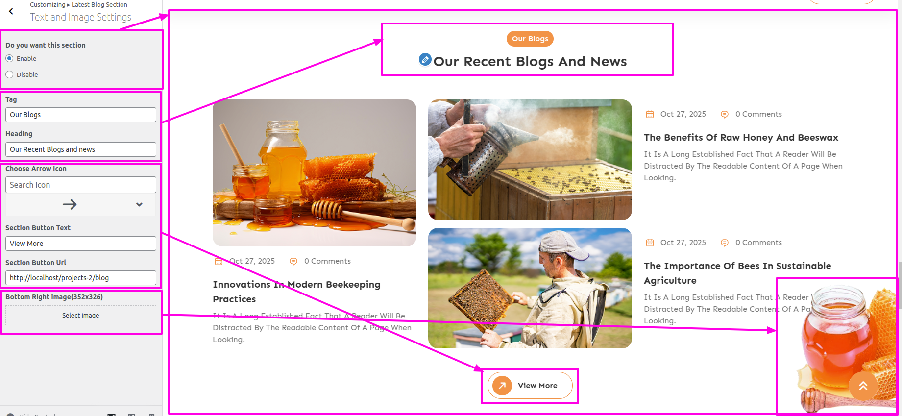 Select The Appearance → Select The Customize → Theme Settings → Our Blog → Text and Image Settings
