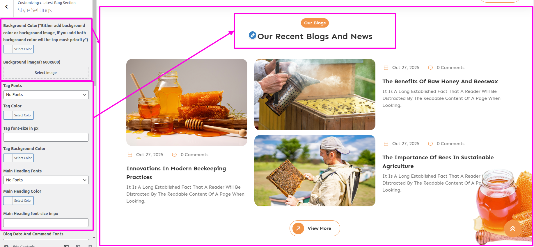 SelectThe Appearance → Select The Customize → Theme Settings → Our Blog → Style Settings
