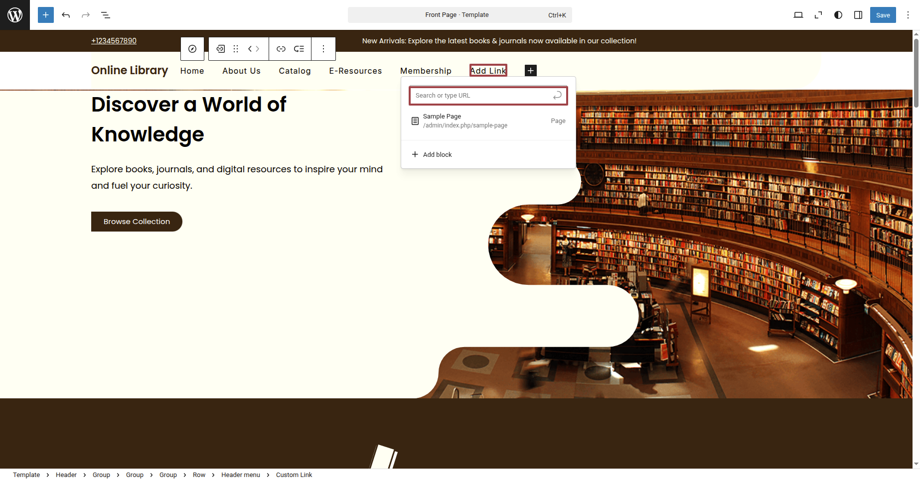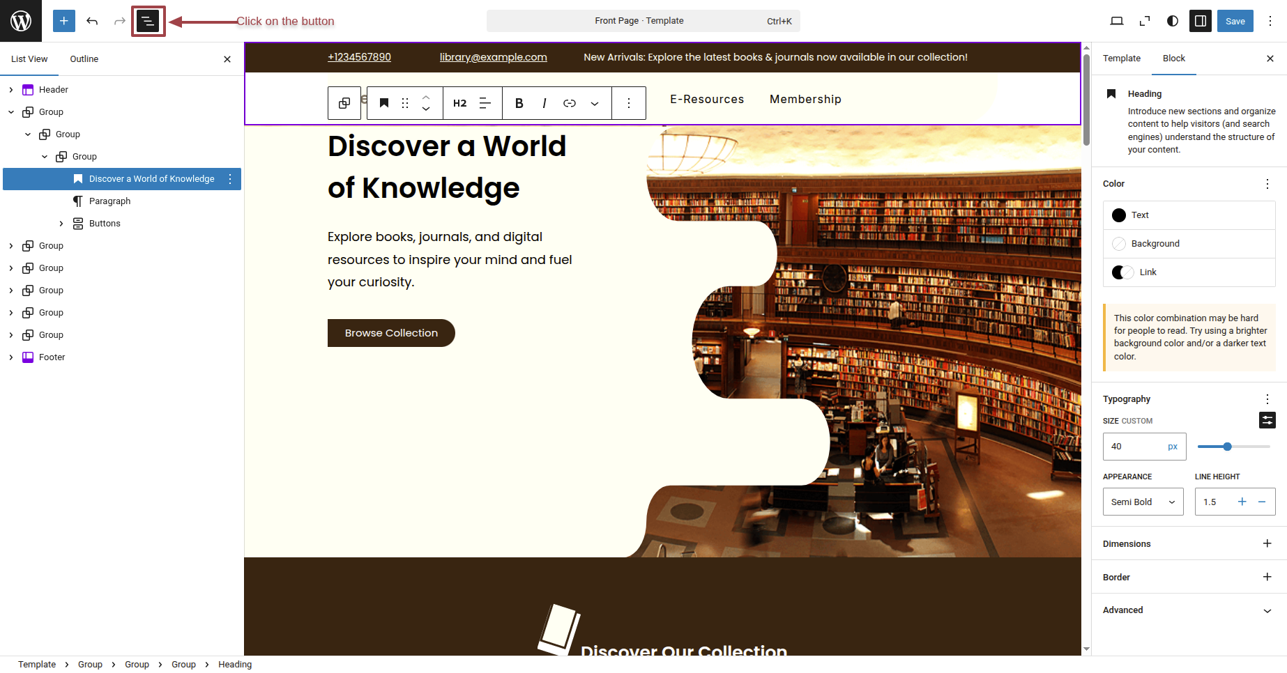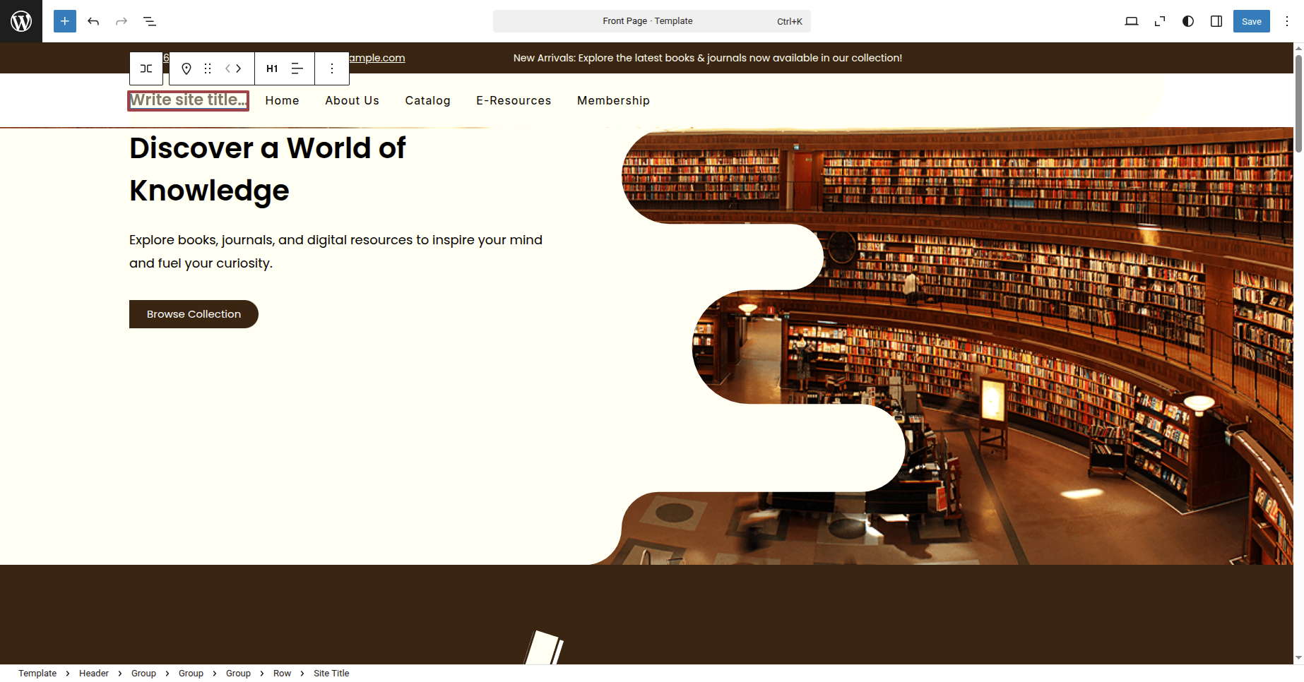 Write Your site title By selecting Site Title Block.