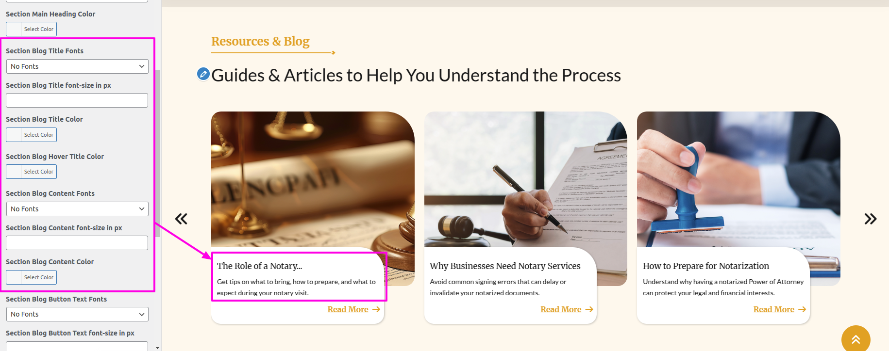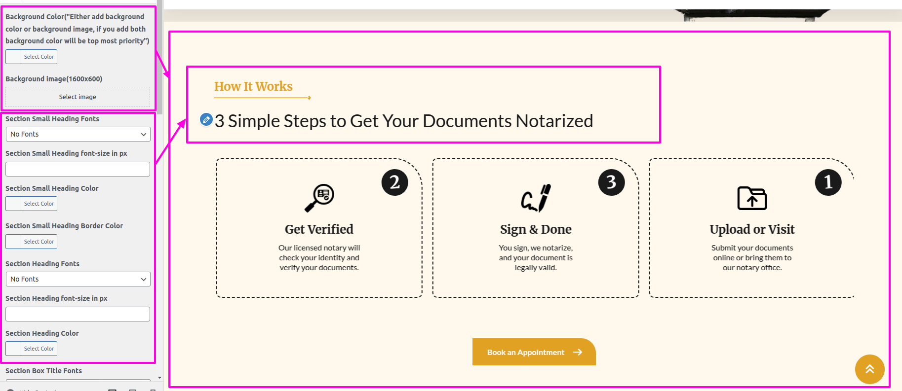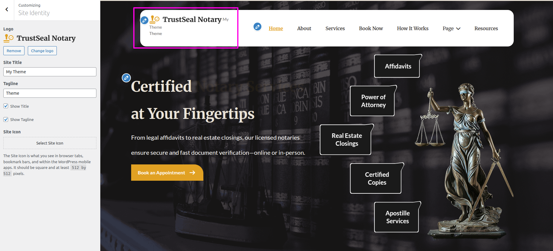 Select The Appearance → Select The Customize → Theme Settings → Notarization for Businesses → Style Settings