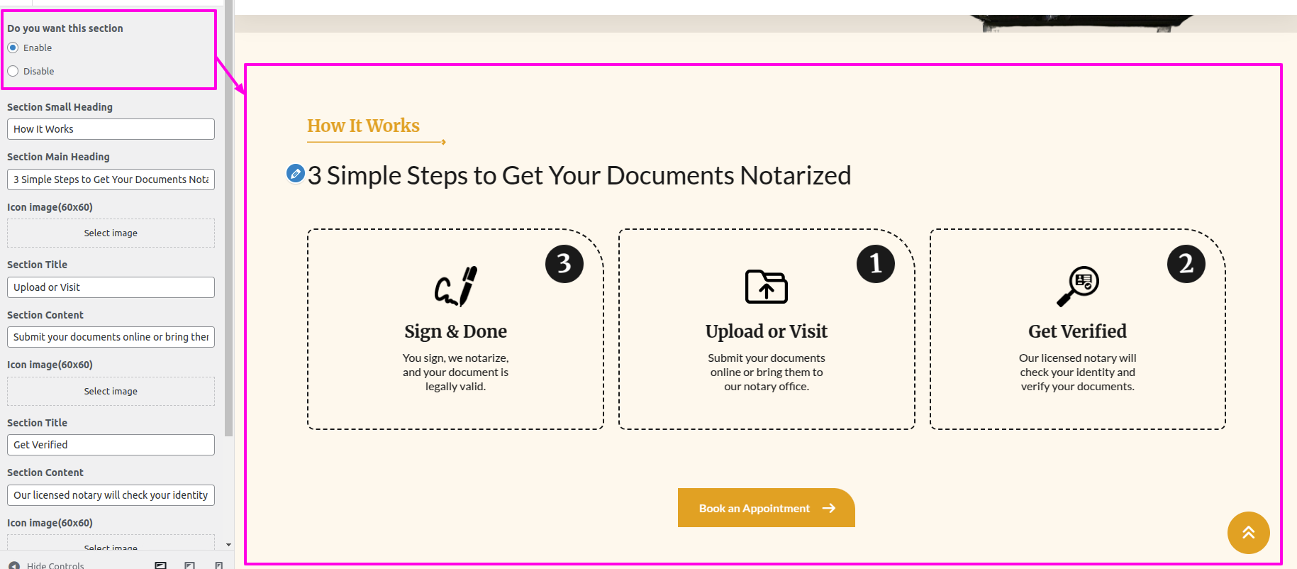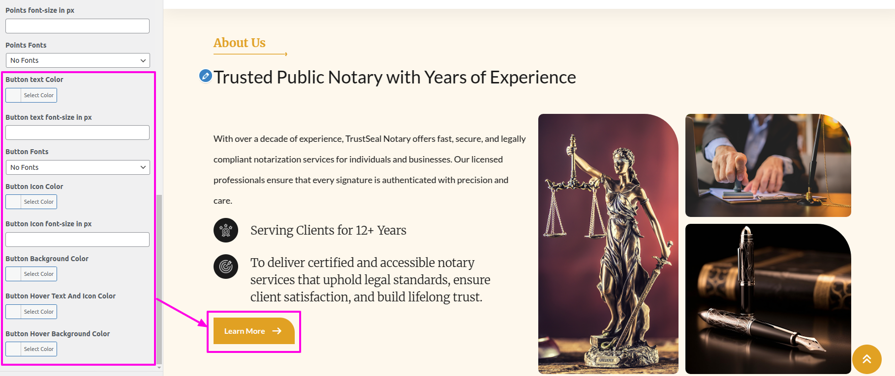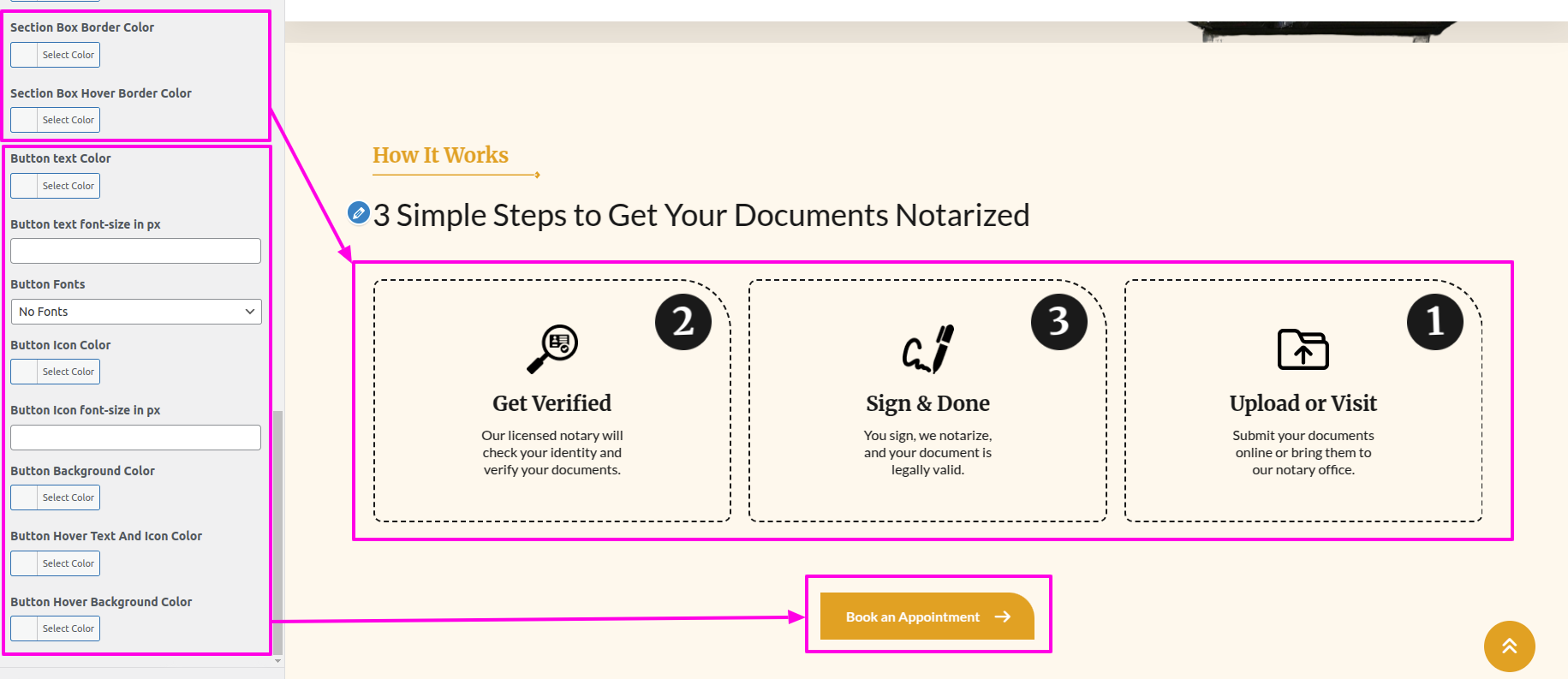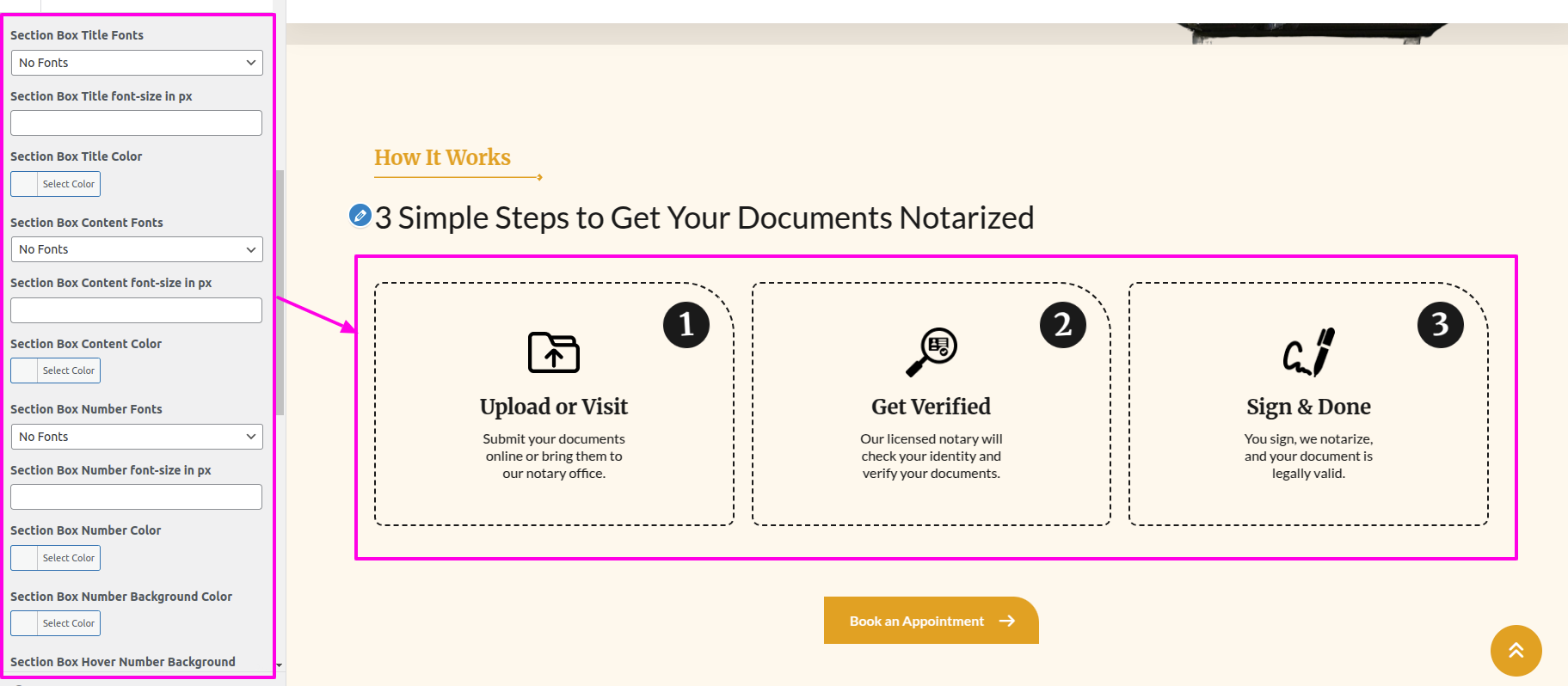 Select The Appearance → Select The Customize → Theme Settings → Notarization for Businesses → Style Settings