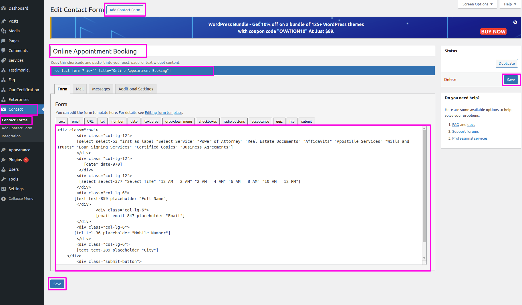 To start Configuring the Appointment Booking on your WordPress site, we need to install contact forn 7 plugin. contact options will appear once you install the plugin