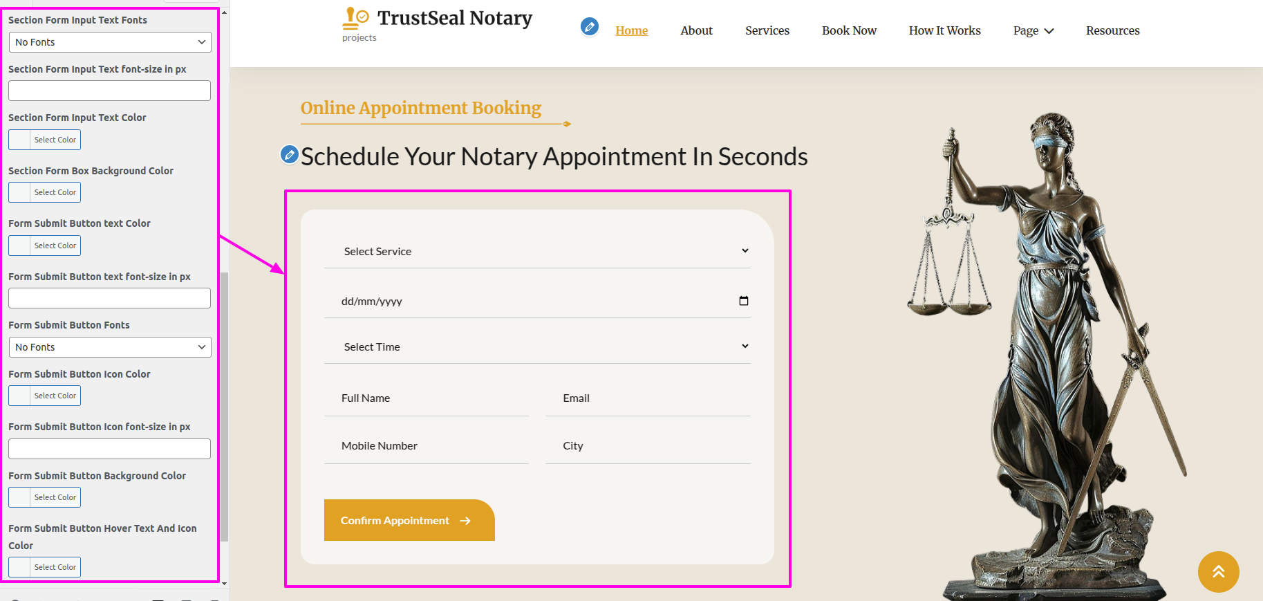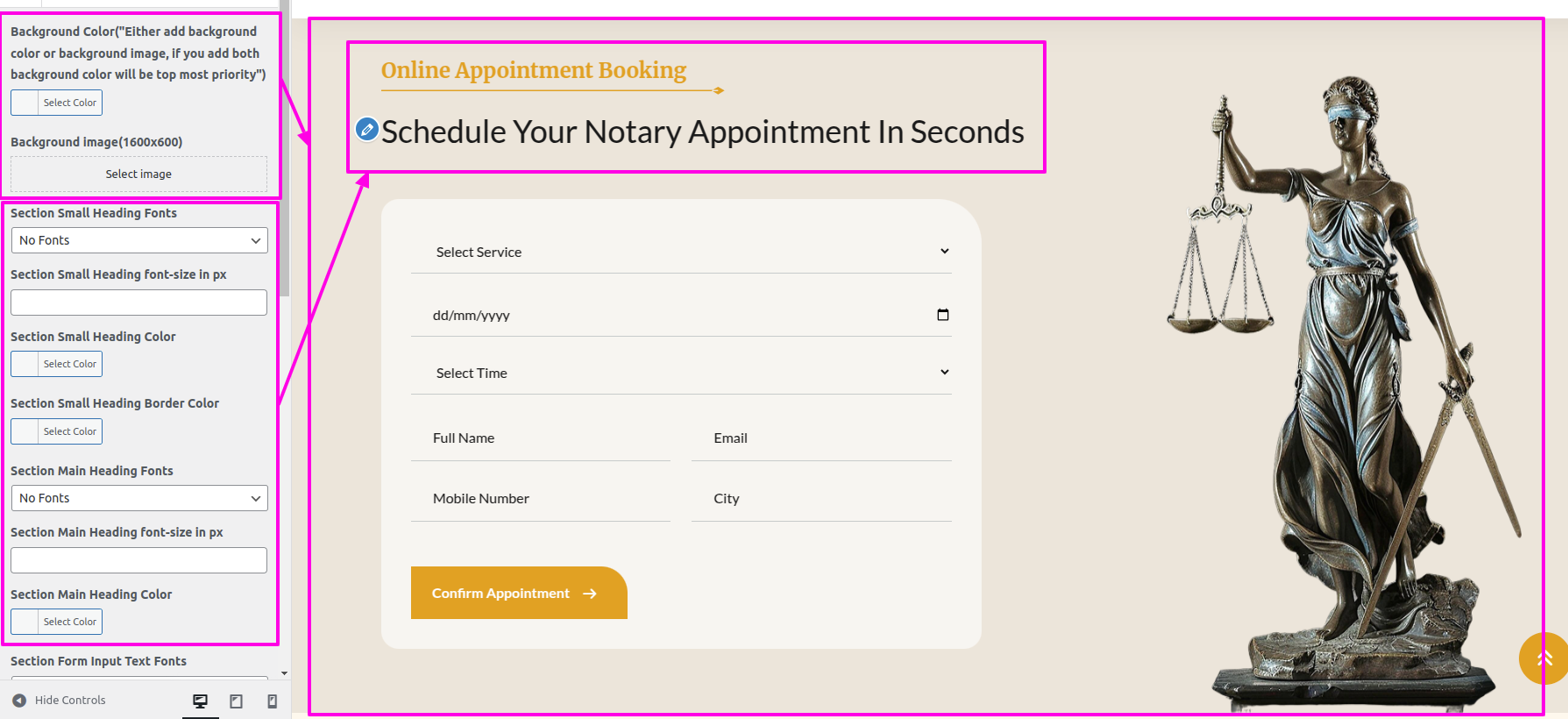 Select The Appearance → Select The Customize → Theme Settings → Appointment Booking → Style Settings