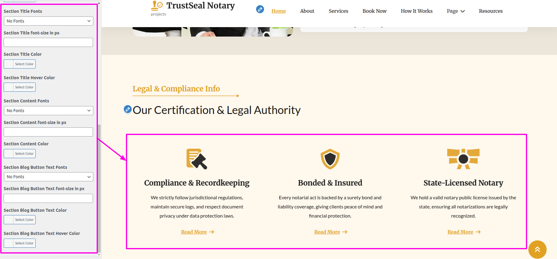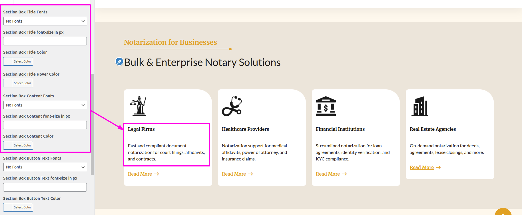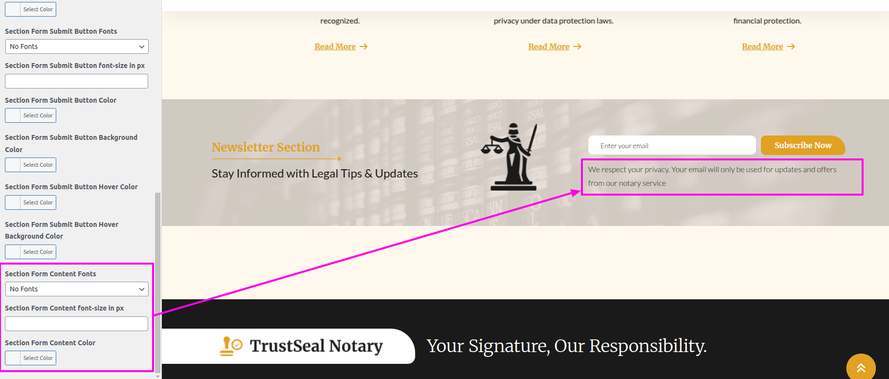 Select The Appearance → Select The Customize → Theme Settings → Notarization for Businesses → Text Settings