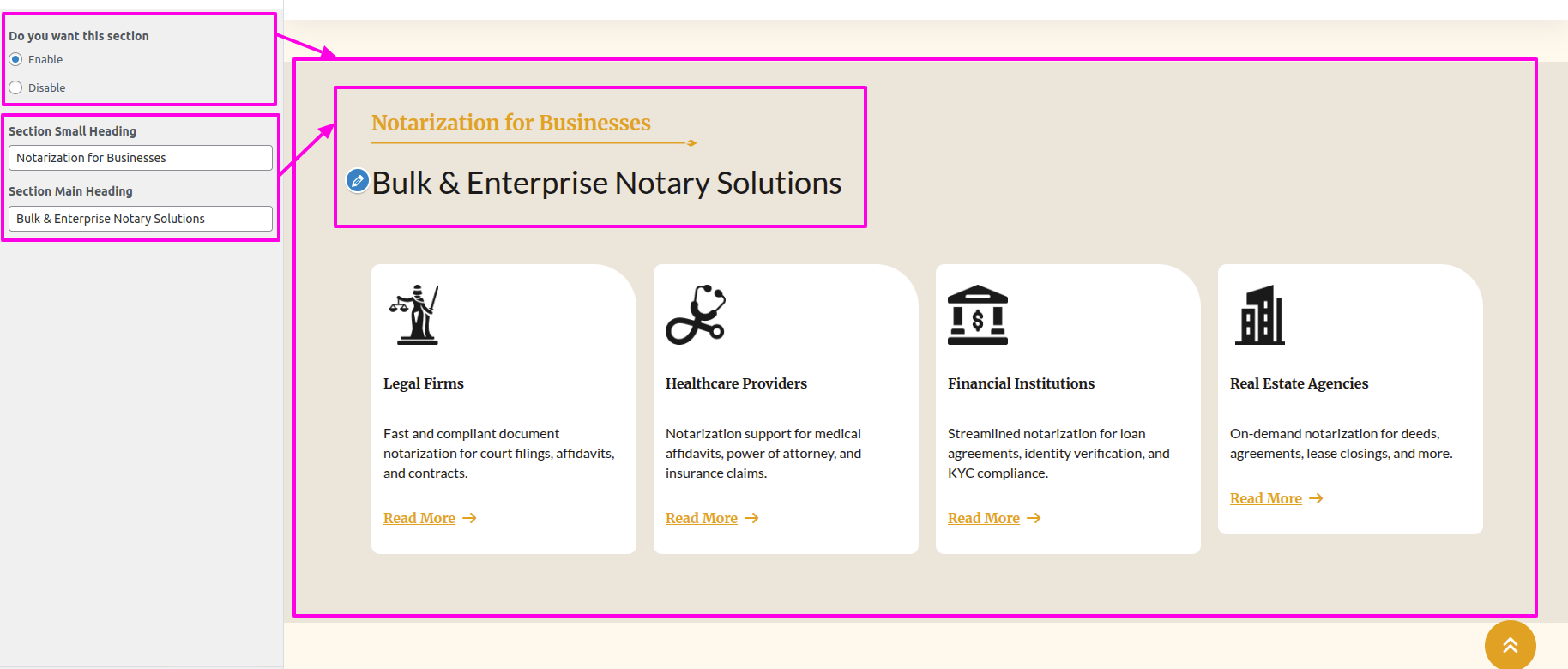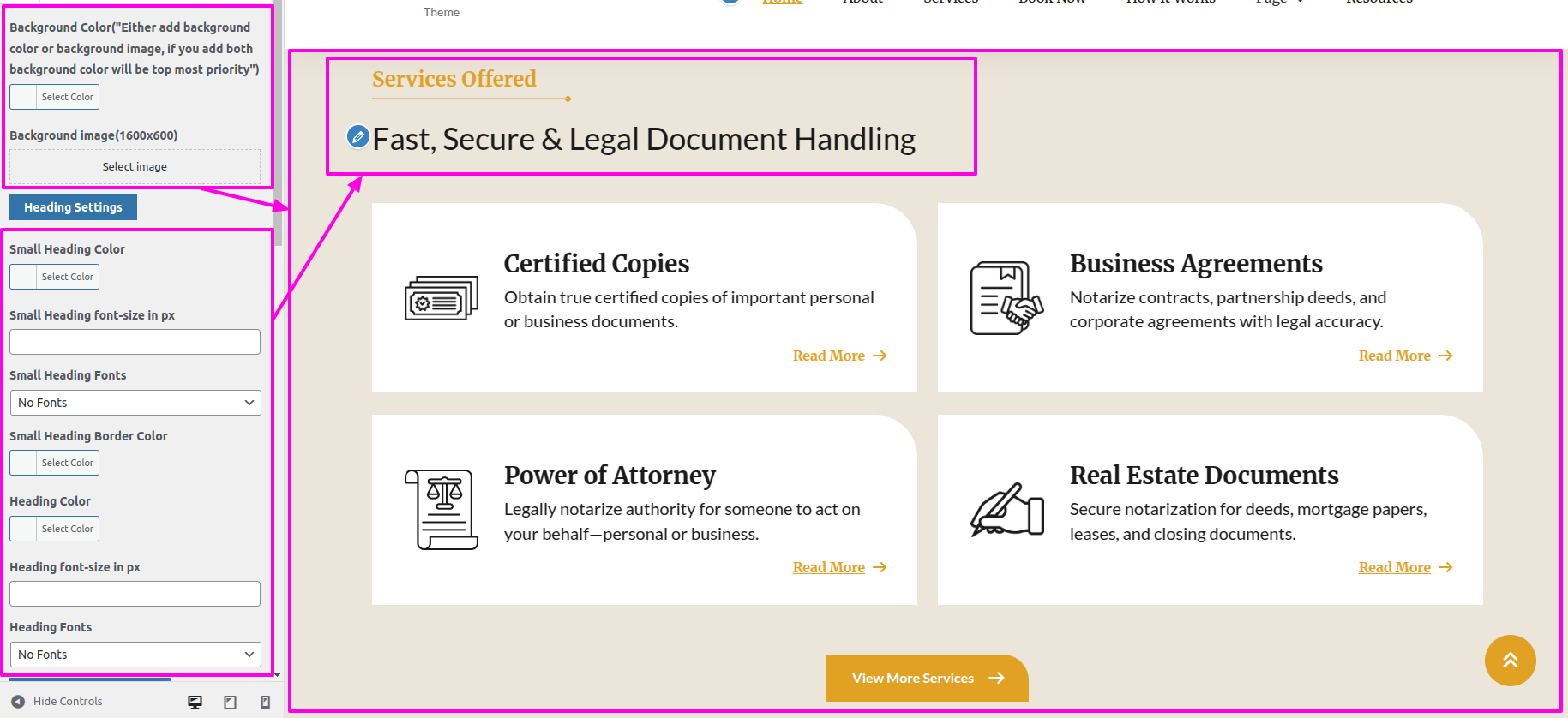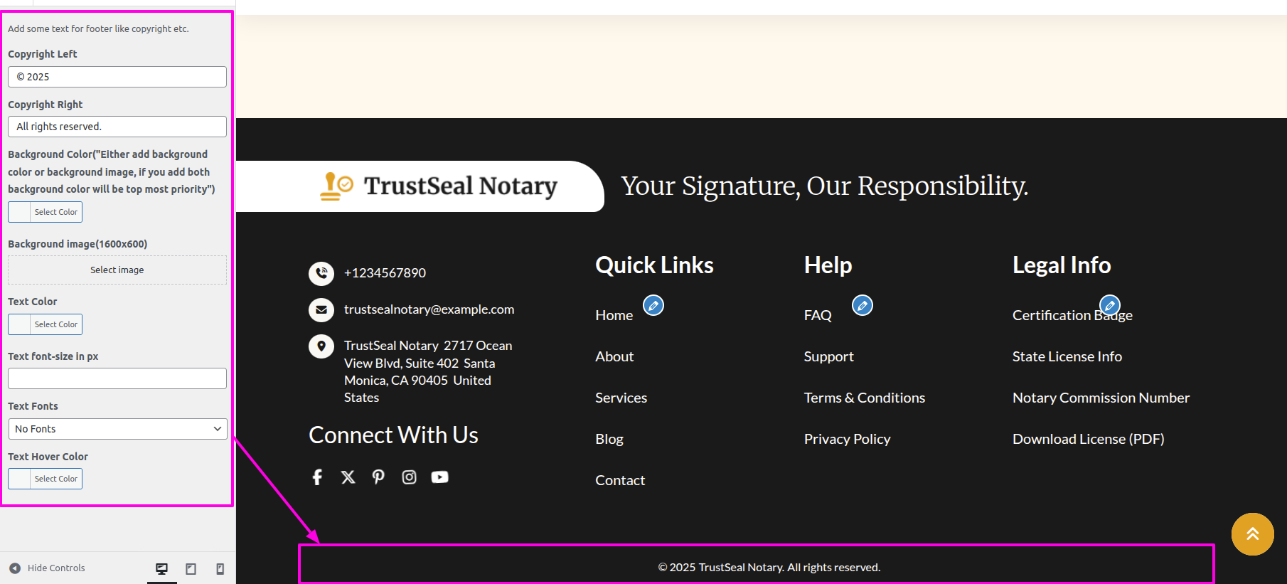 Select The Appearance → Select The Customize → Theme Settings → Notarization for Businesses → Text Settings