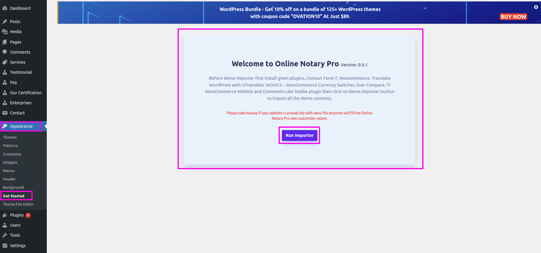 Import demonstration content with one click to get your theme Set-up. This content will lead you through creating your website.
