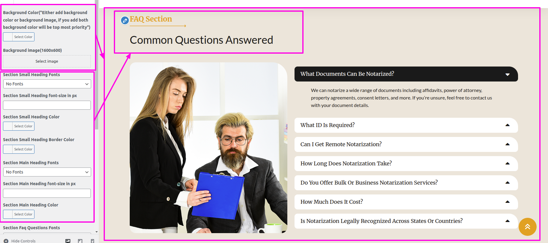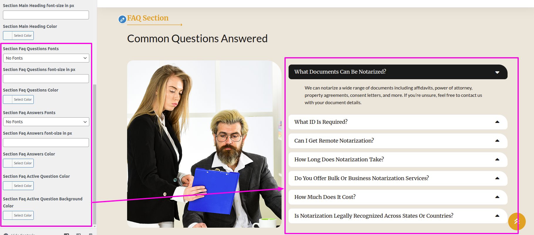 Select The Appearance → Select The Customize → Theme Settings → Faq → Style Settings