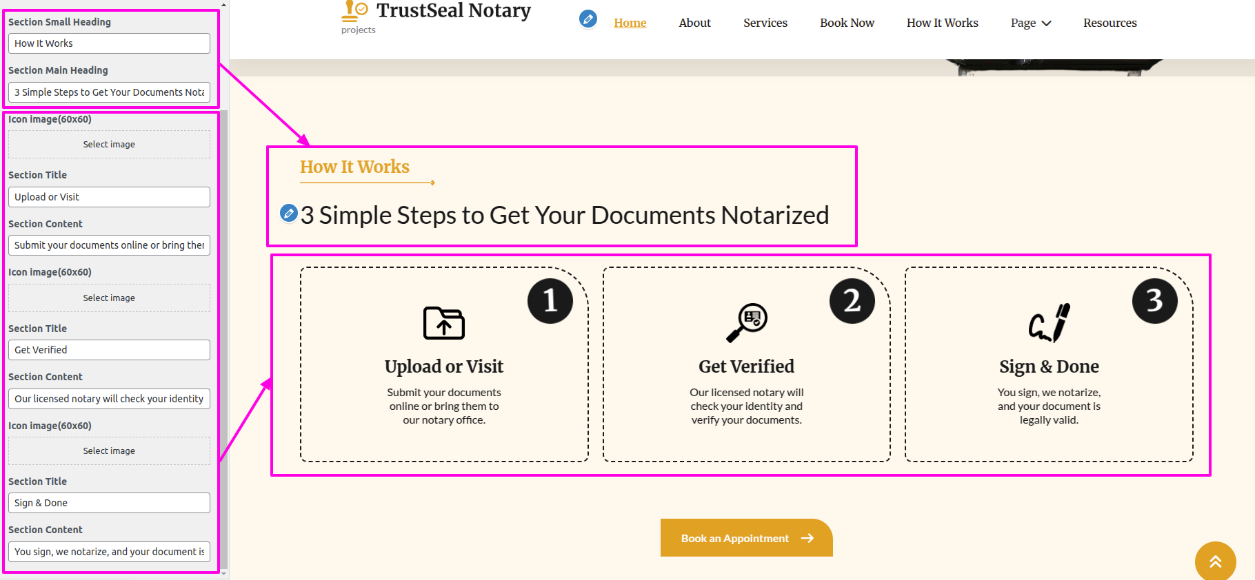 Select The Appearance → Select The Customize → Theme Settings → How It Works → Text Settings