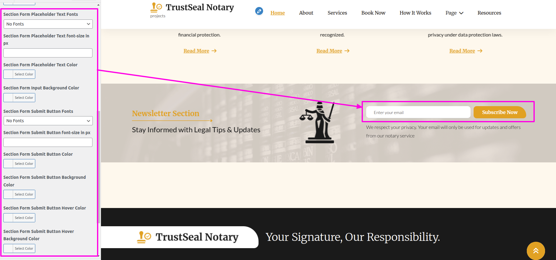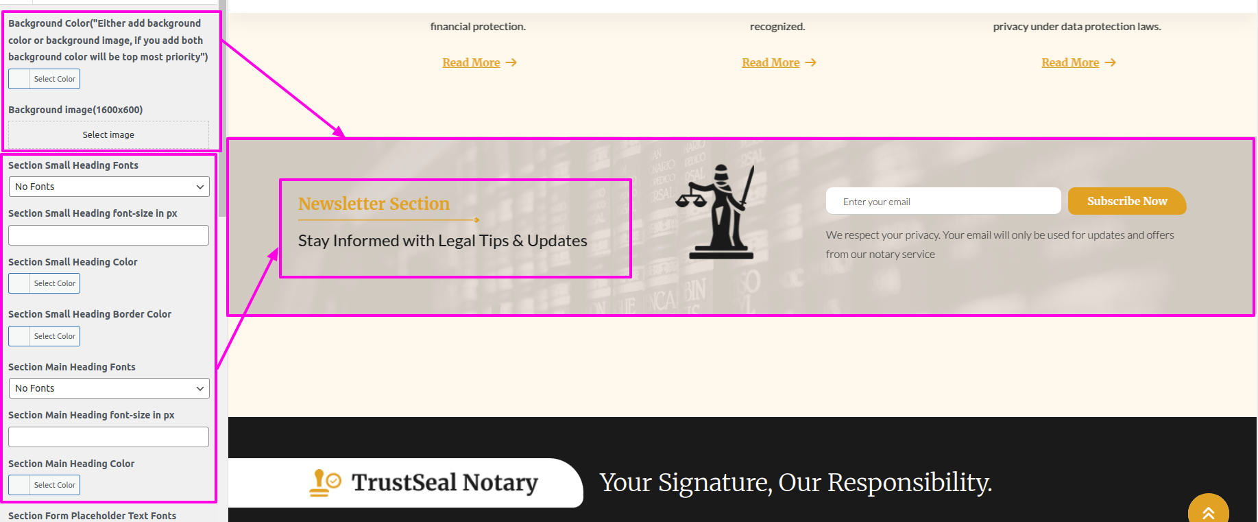 Select The Appearance → Select The Customize → Theme Settings → Newsletter → Style Settings