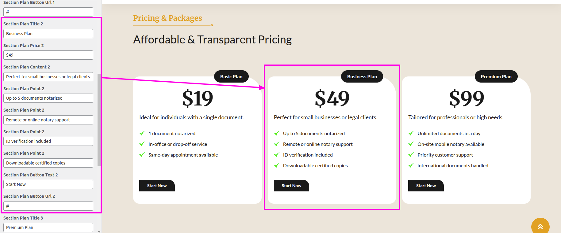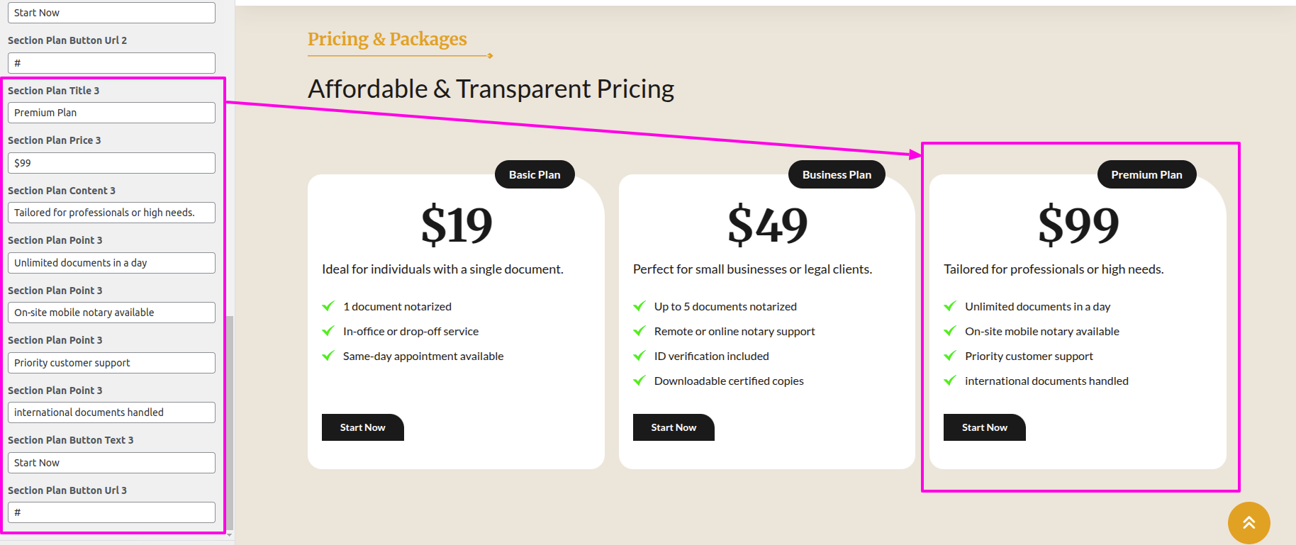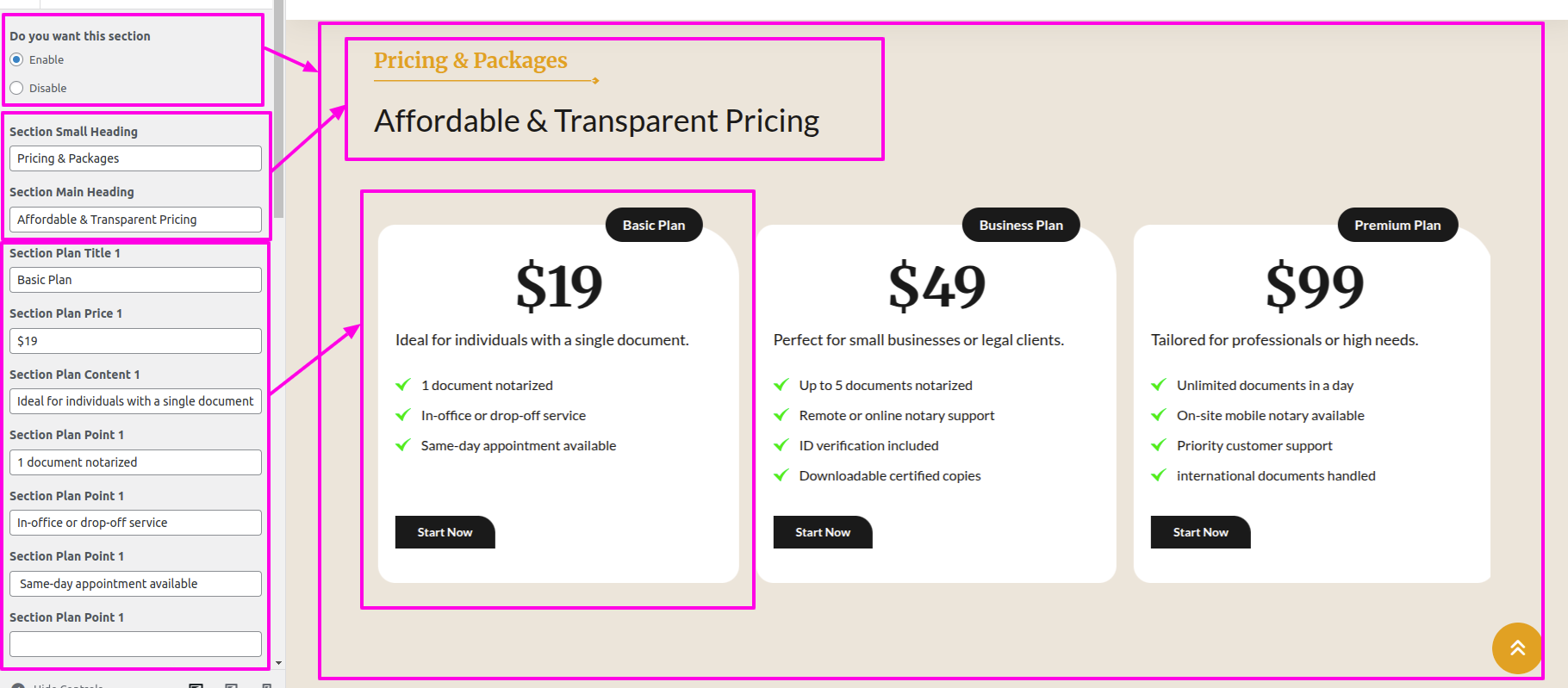 Select The Appearance → Select The Customize → Theme Settings → Pricing & Packages → Text Settings