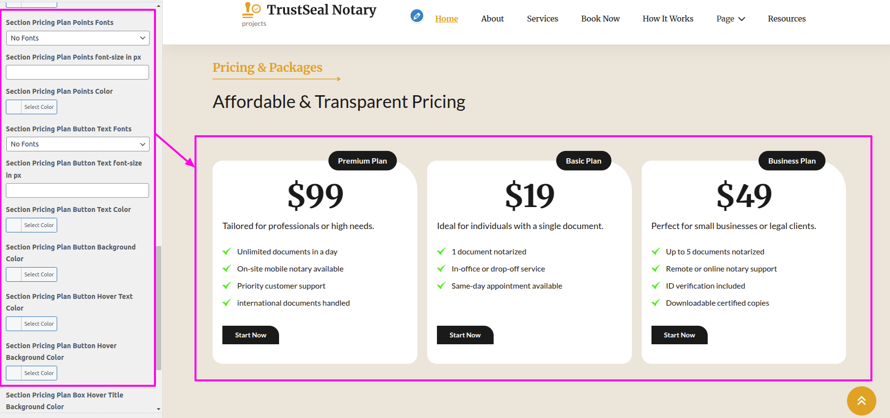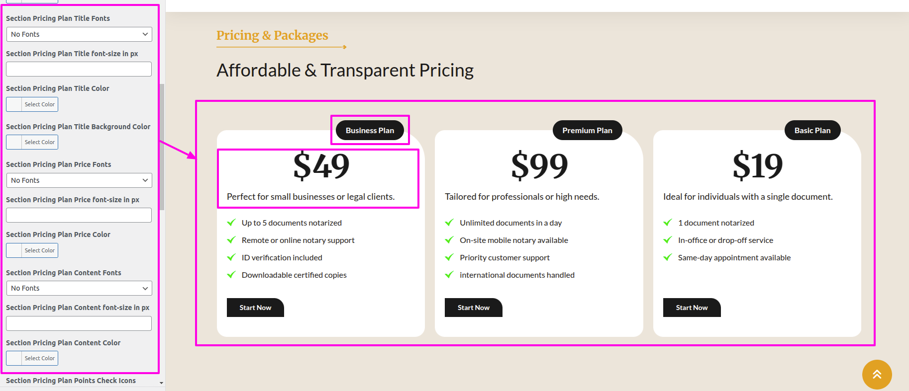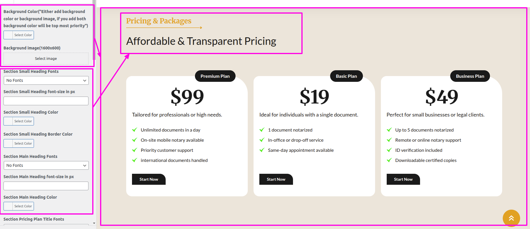 Select The Appearance → Select The Customize → Theme Settings → Pricing & Packages → Style Settings