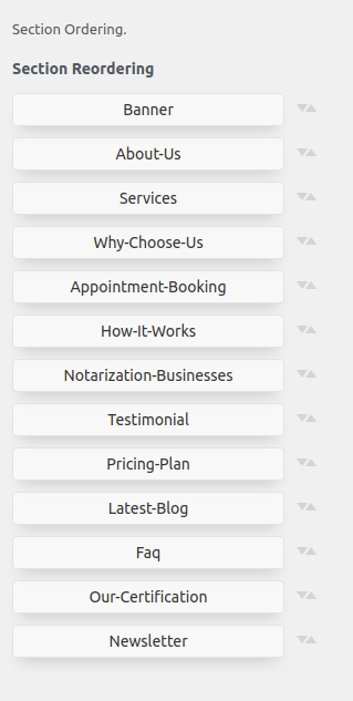 Section reordering means to arranage the section as per our requirement. first you need to choose section and drag section on top or bottom where you need it. when you will drap any section your front view will change according to your choice.