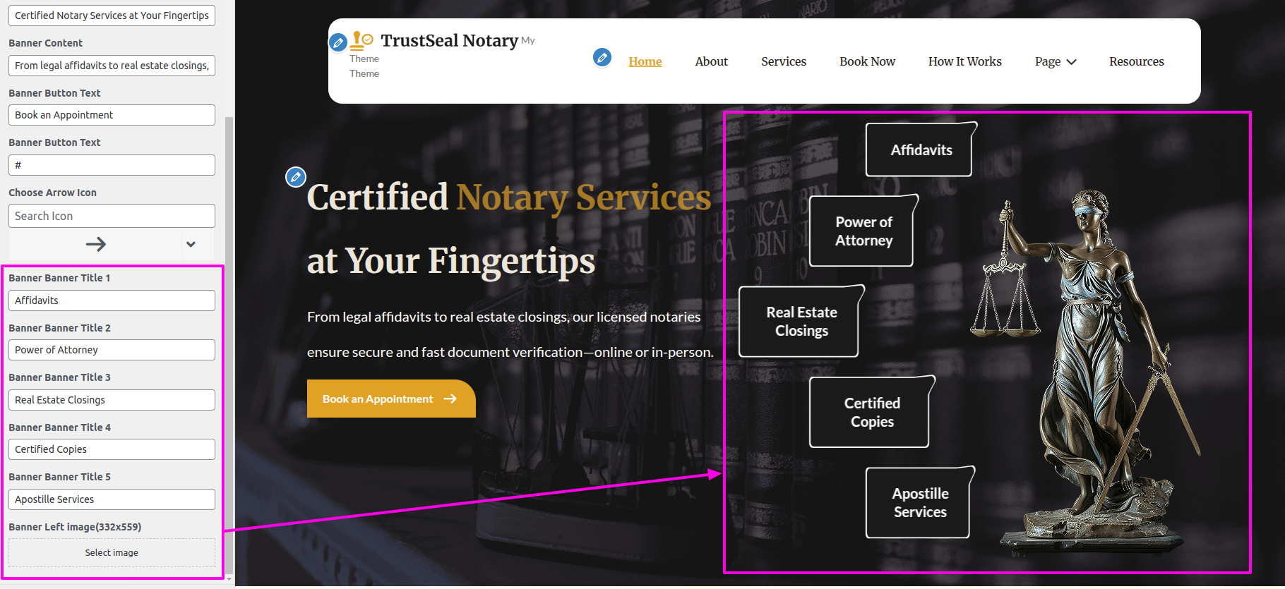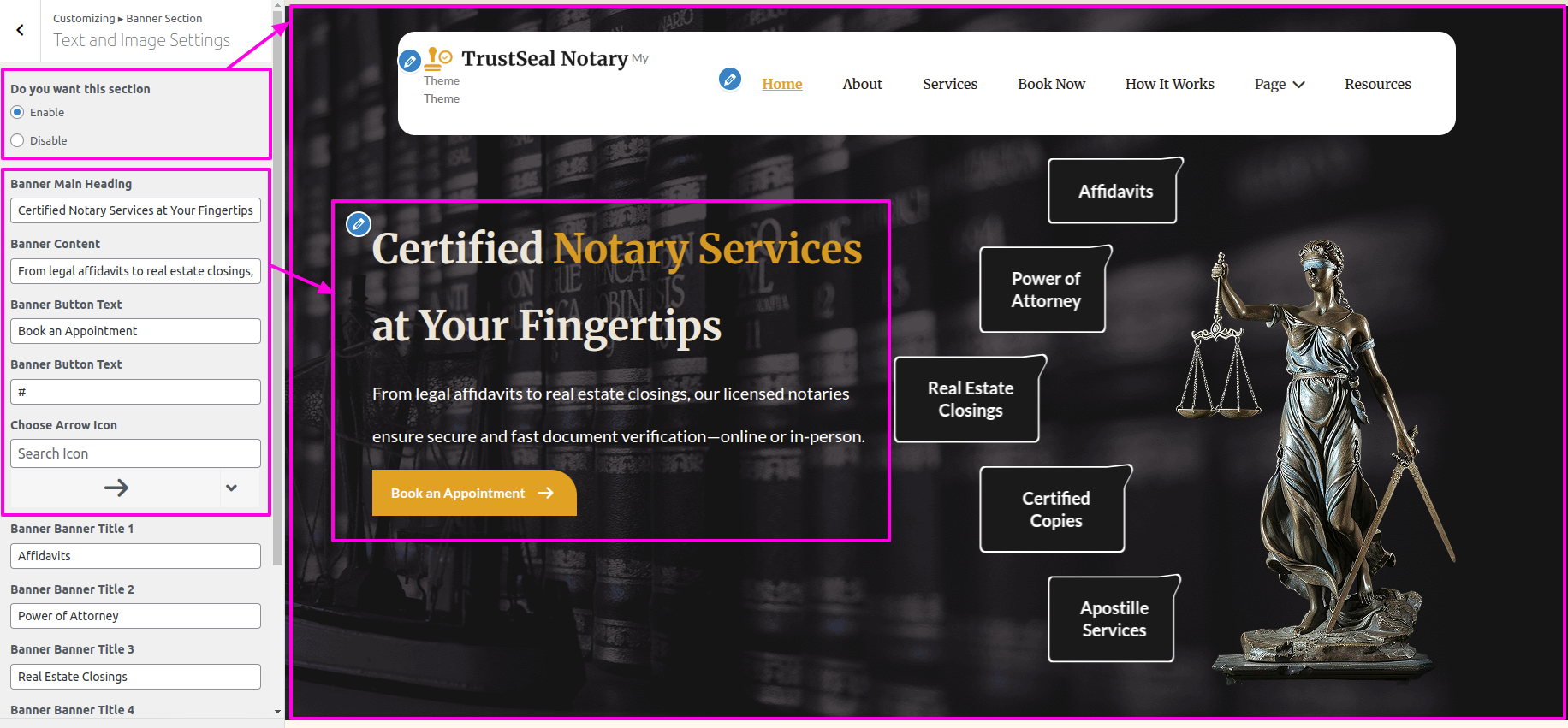 Select The Appearance → Select The Customize → Theme Settings → Banner → Text and Image Settings