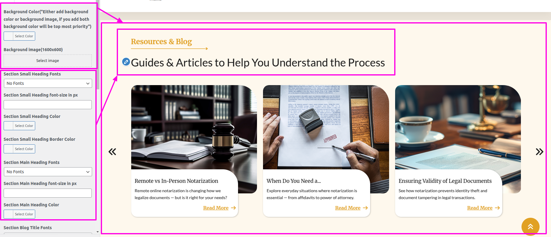 Select The Appearance → Select The Customize → Theme Settings → Our Blog → Text and Image Settings