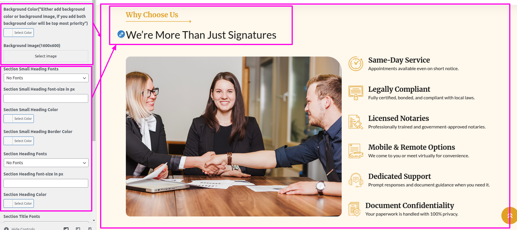 Select The Appearance → Select The Customize → Theme Settings → Why Choose Us → Style Settings