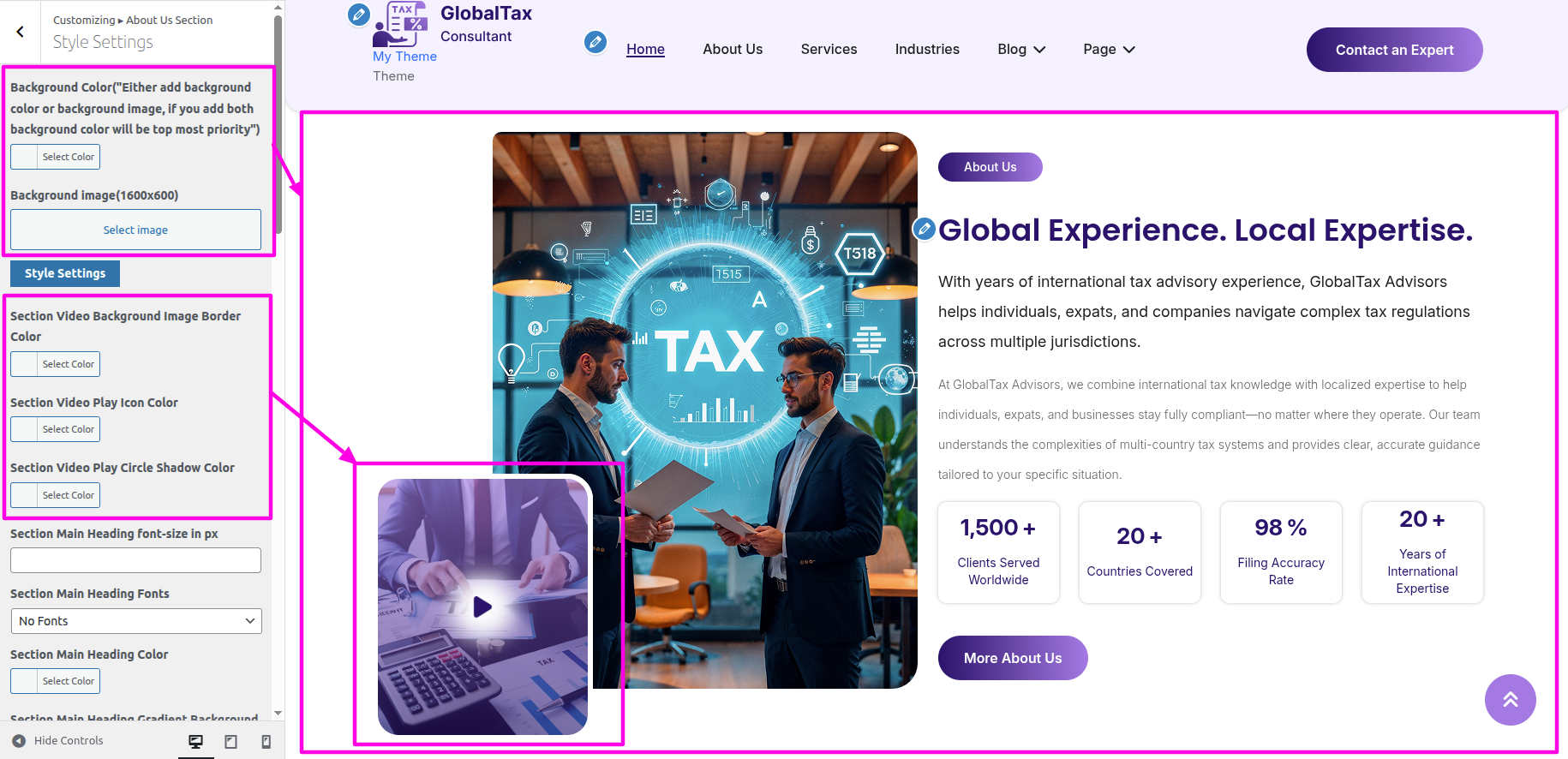 Select The Appearance → Select The Customize → Theme Settings → About Us → Style Settings