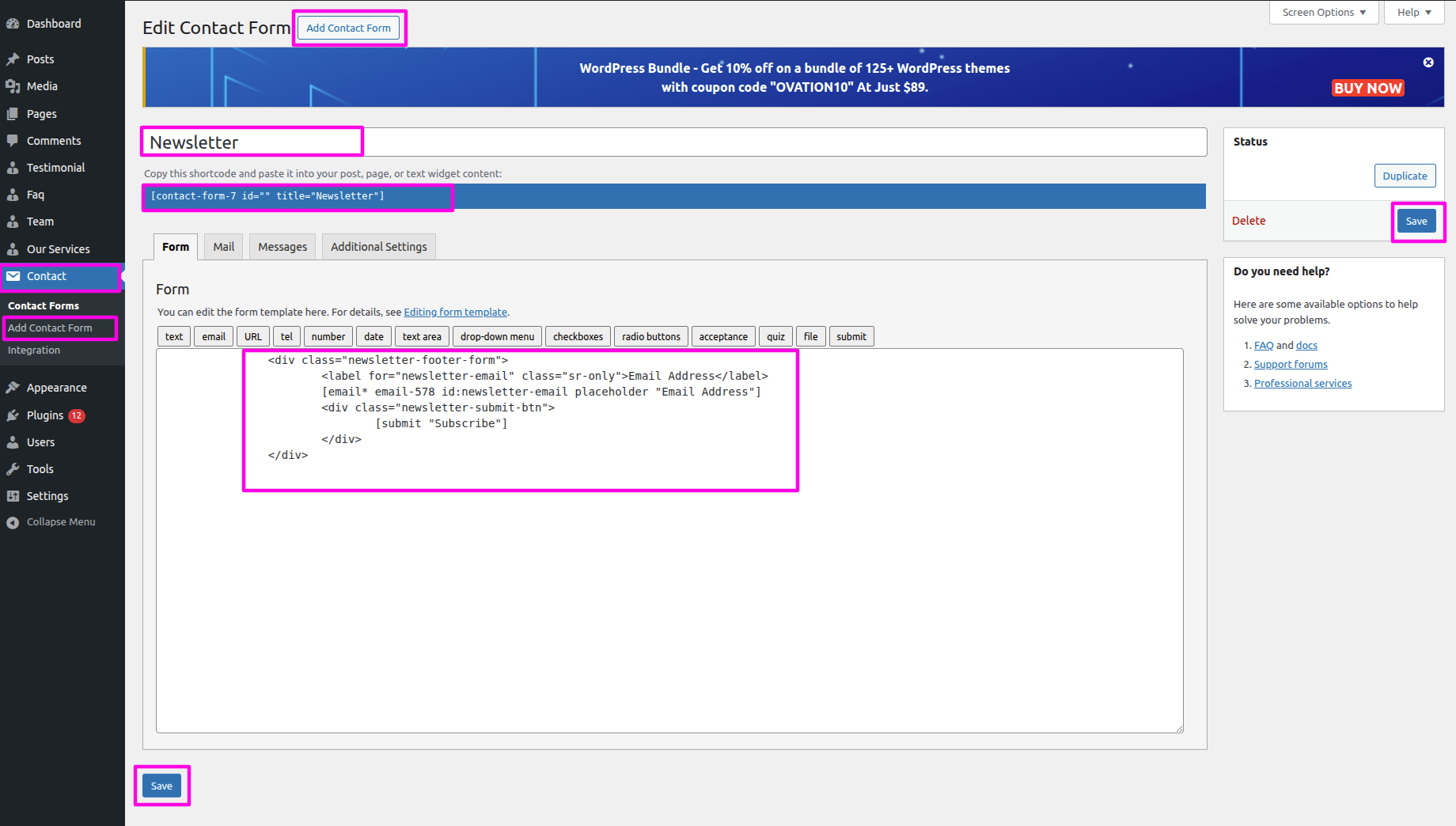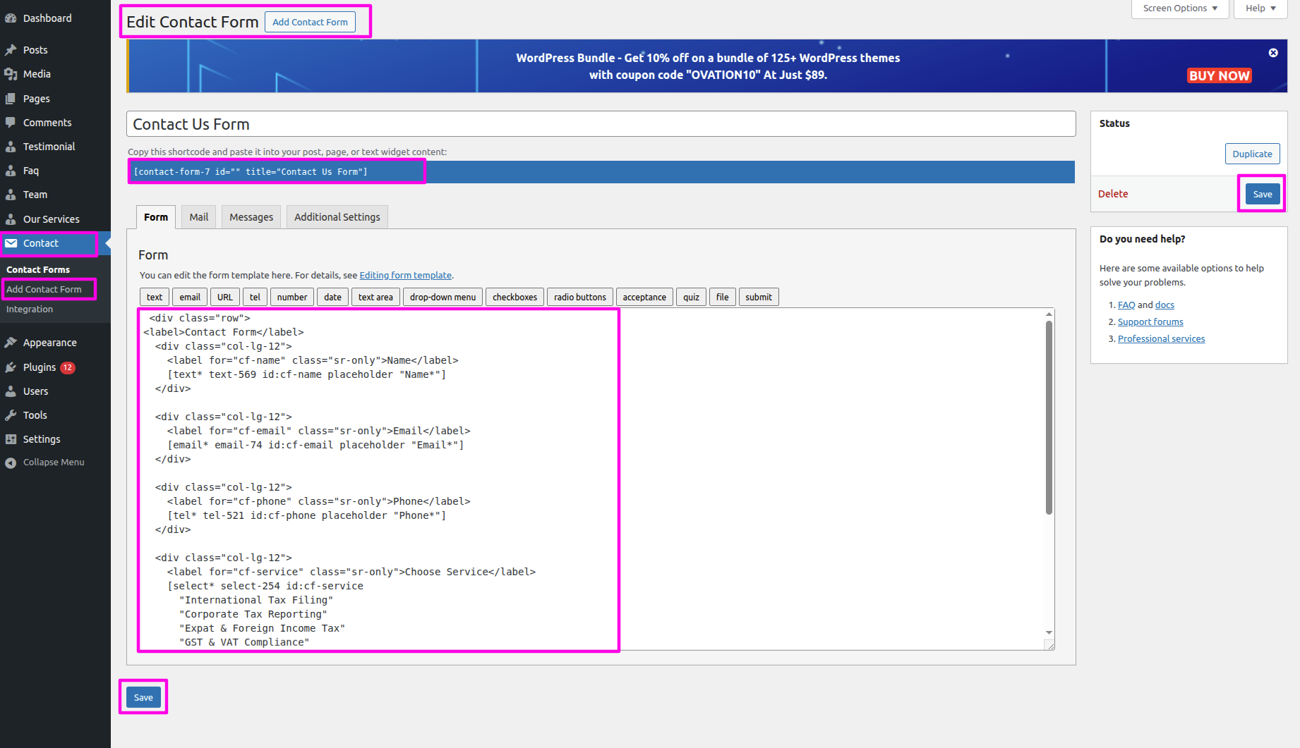 To start Configuring the Contact Page on your WordPress site, we need to install contact forn 7 plugin. contact options will appear once you install the plugin