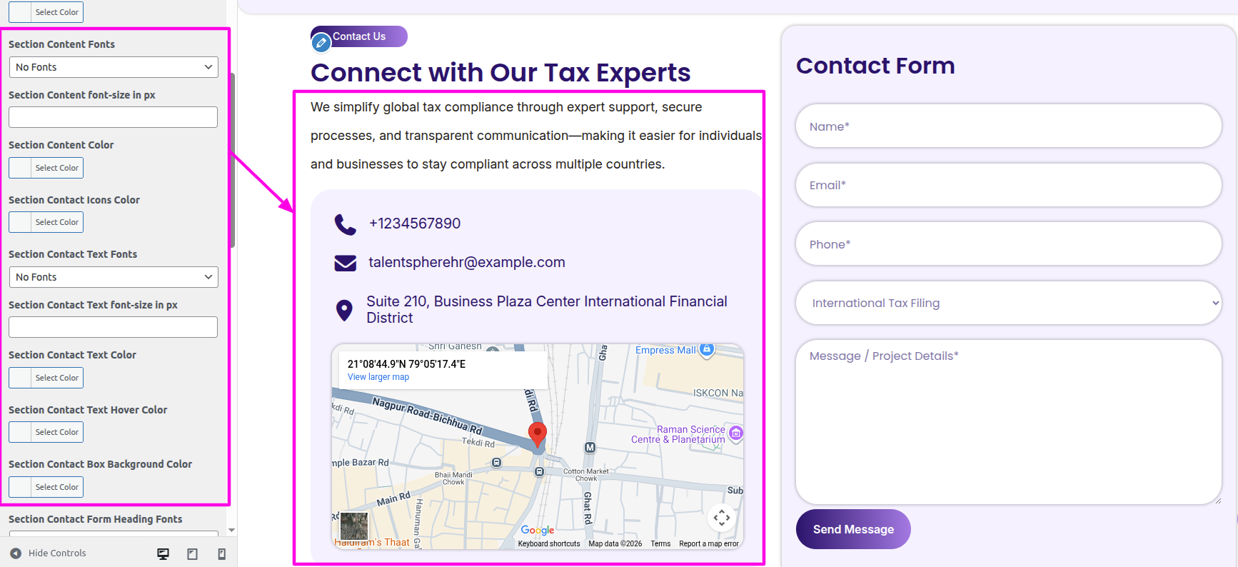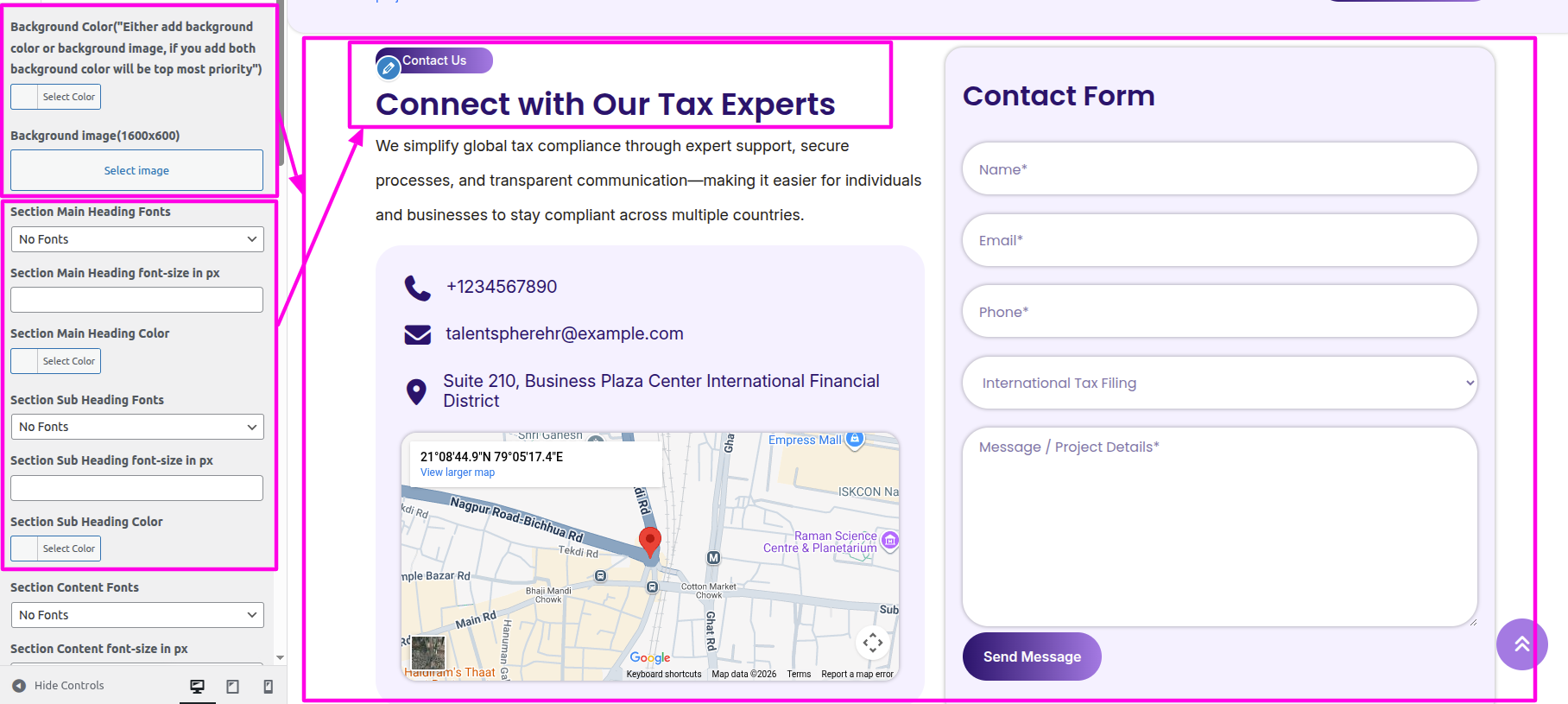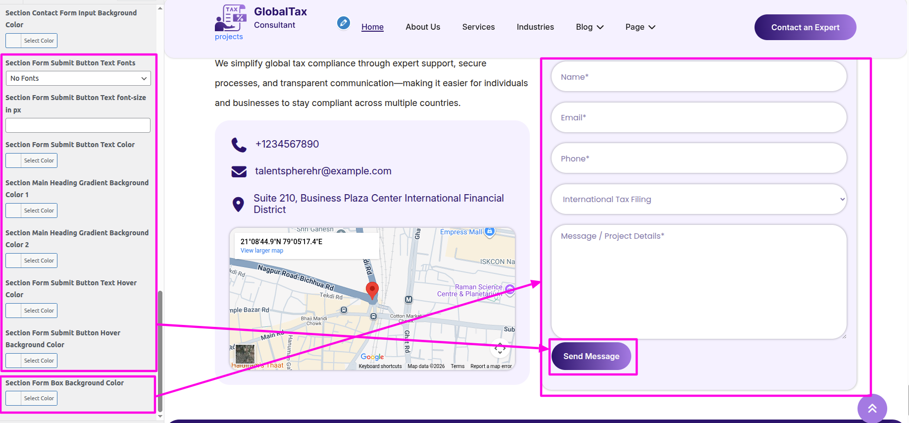 Select The Appearance → Select The Customize → Theme Settings → Contact Us → Style Settings