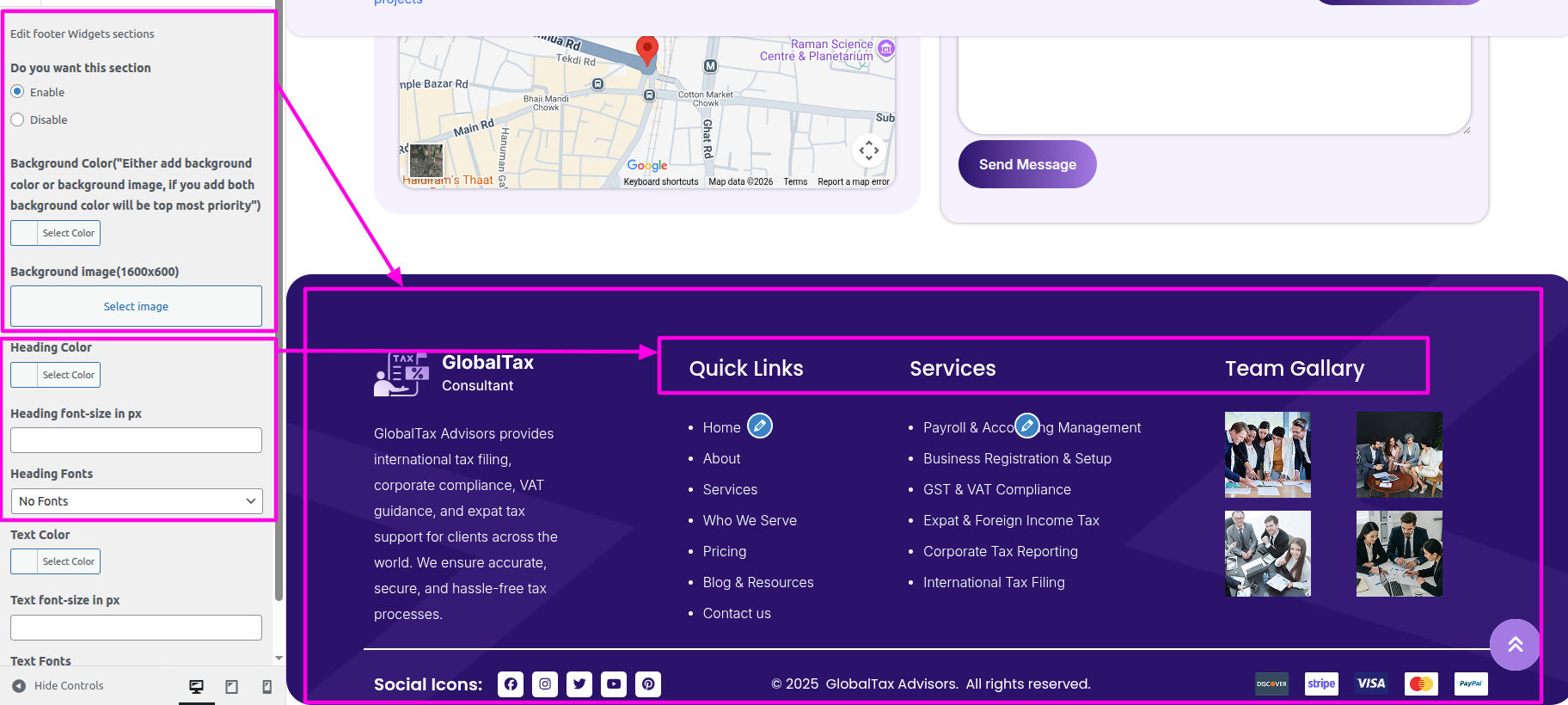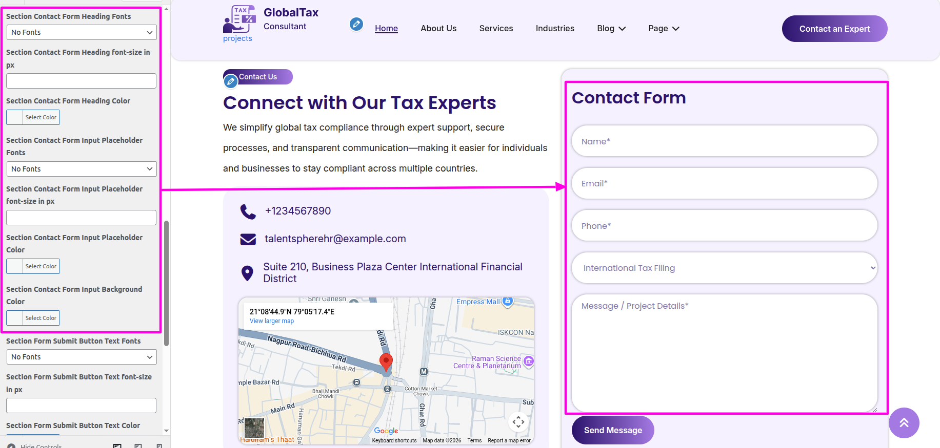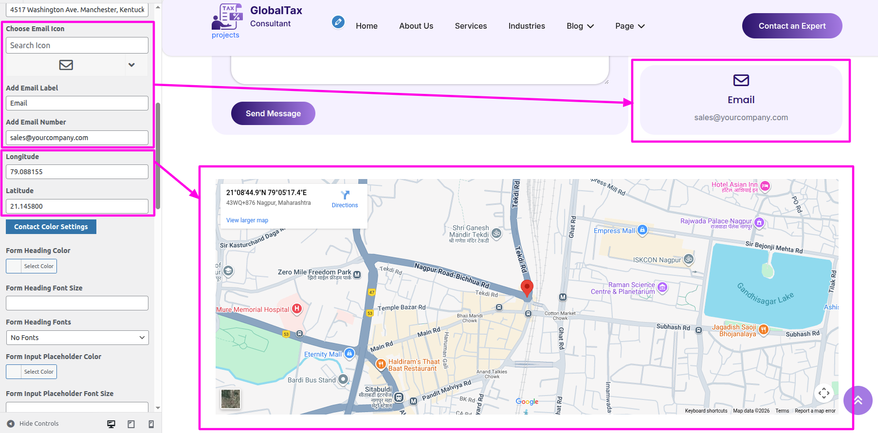 Select The Appearance → Select The Customize → Theme Settings → Contact Us → Style Settings