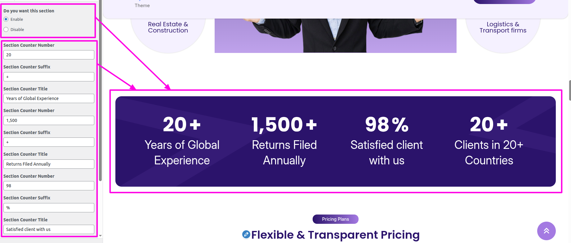 Select The Appearance → Select The Customize → Theme Settings → Counter → Text Settings