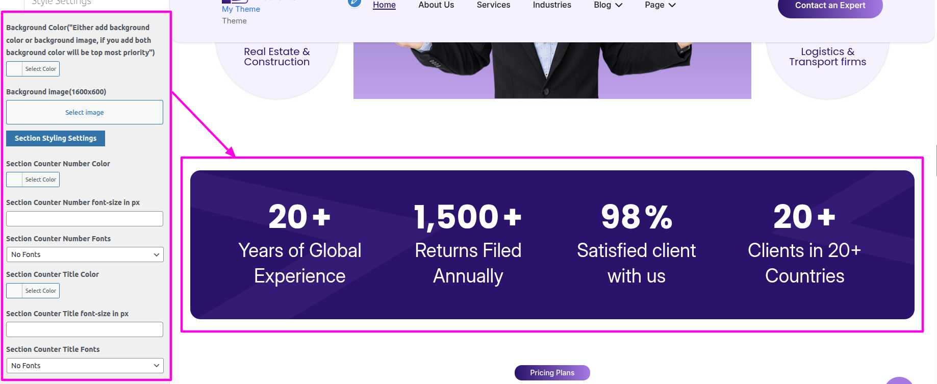 Select The Appearance → Select The Customize → Theme Settings → Counter → Style Settings