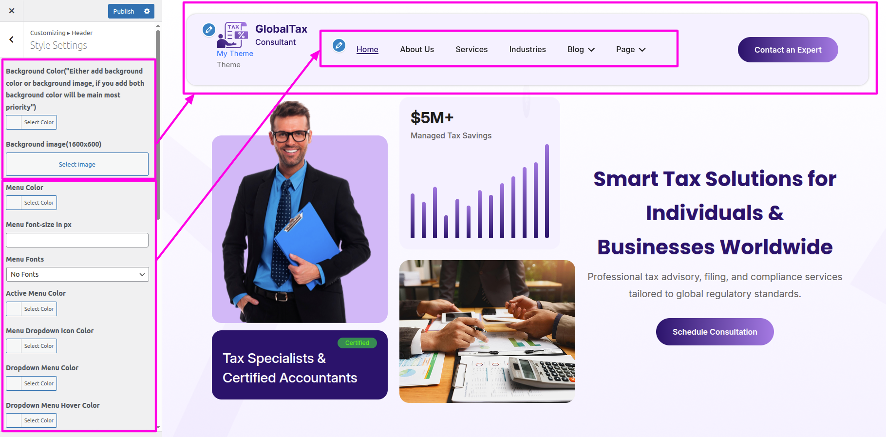 SelectThe Appearance → Select The Customize → Theme Settings → Header → Style Settings