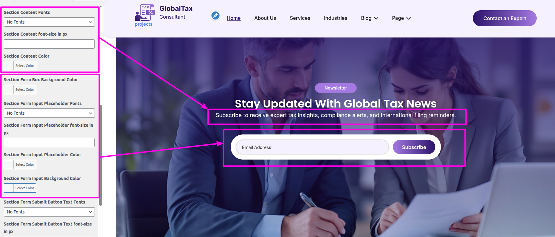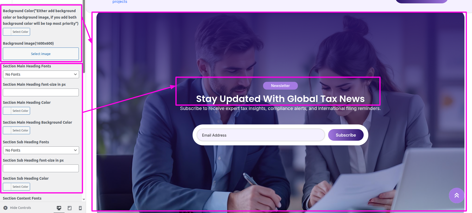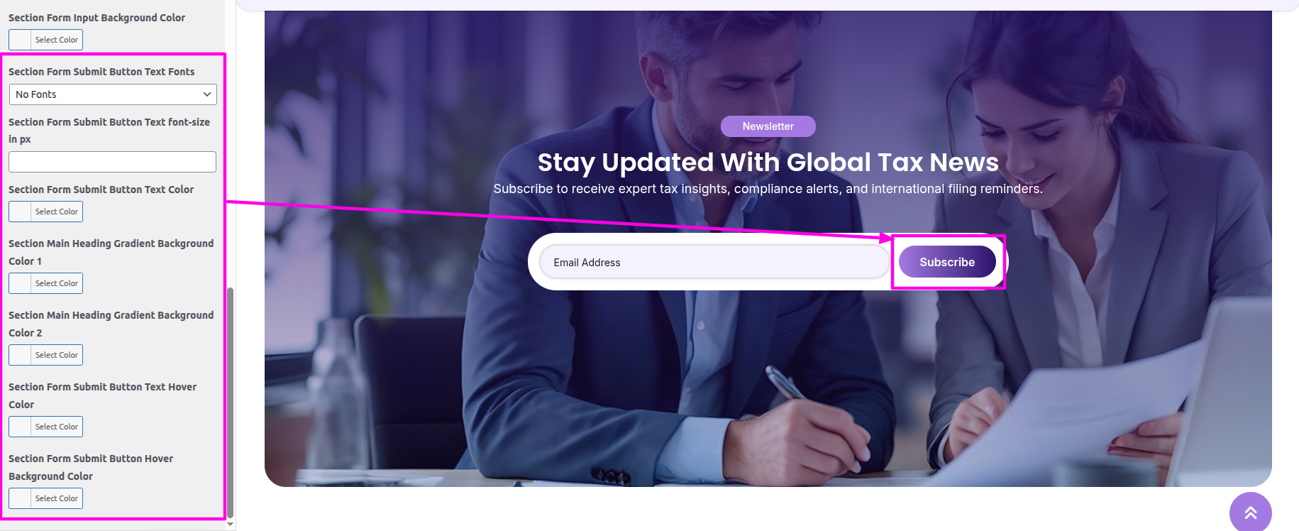 Select The Appearance → Select The Customize → Theme Settings → Newsletter → Style Settings