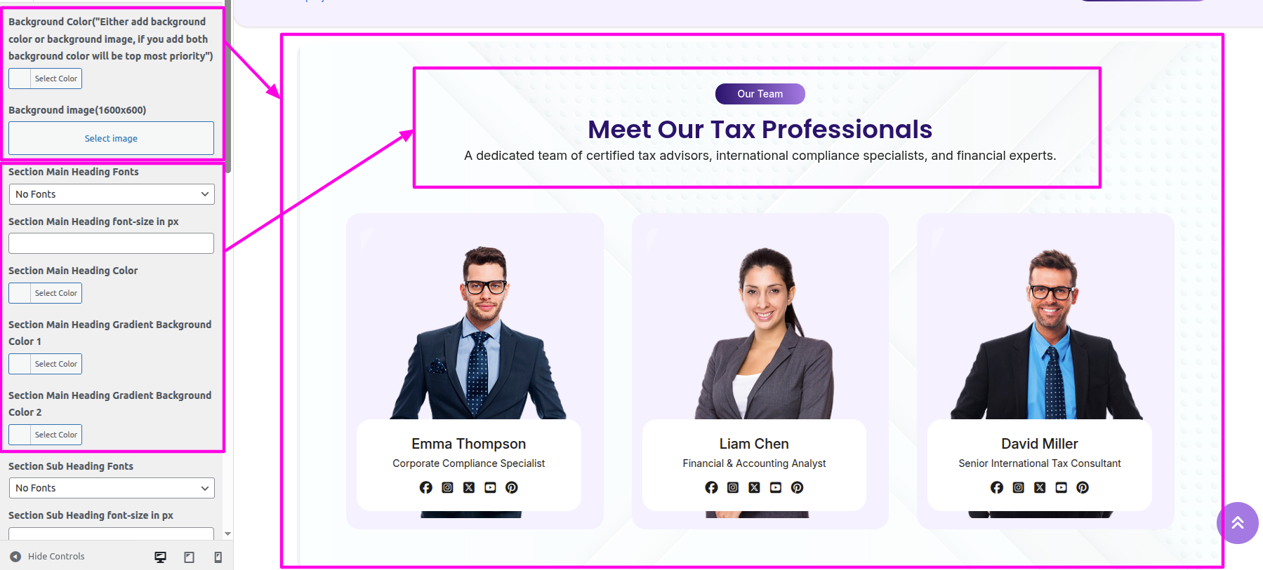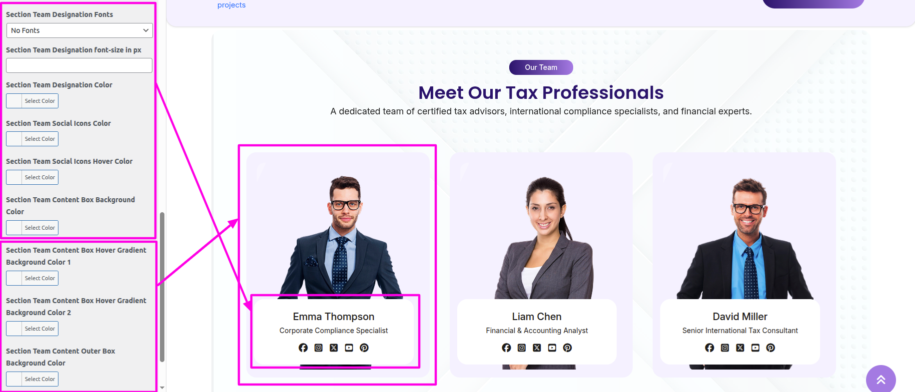 Select The Appearance → Select The Customize → Theme Settings → our-team→ Style Settings