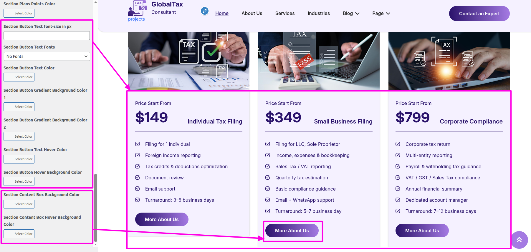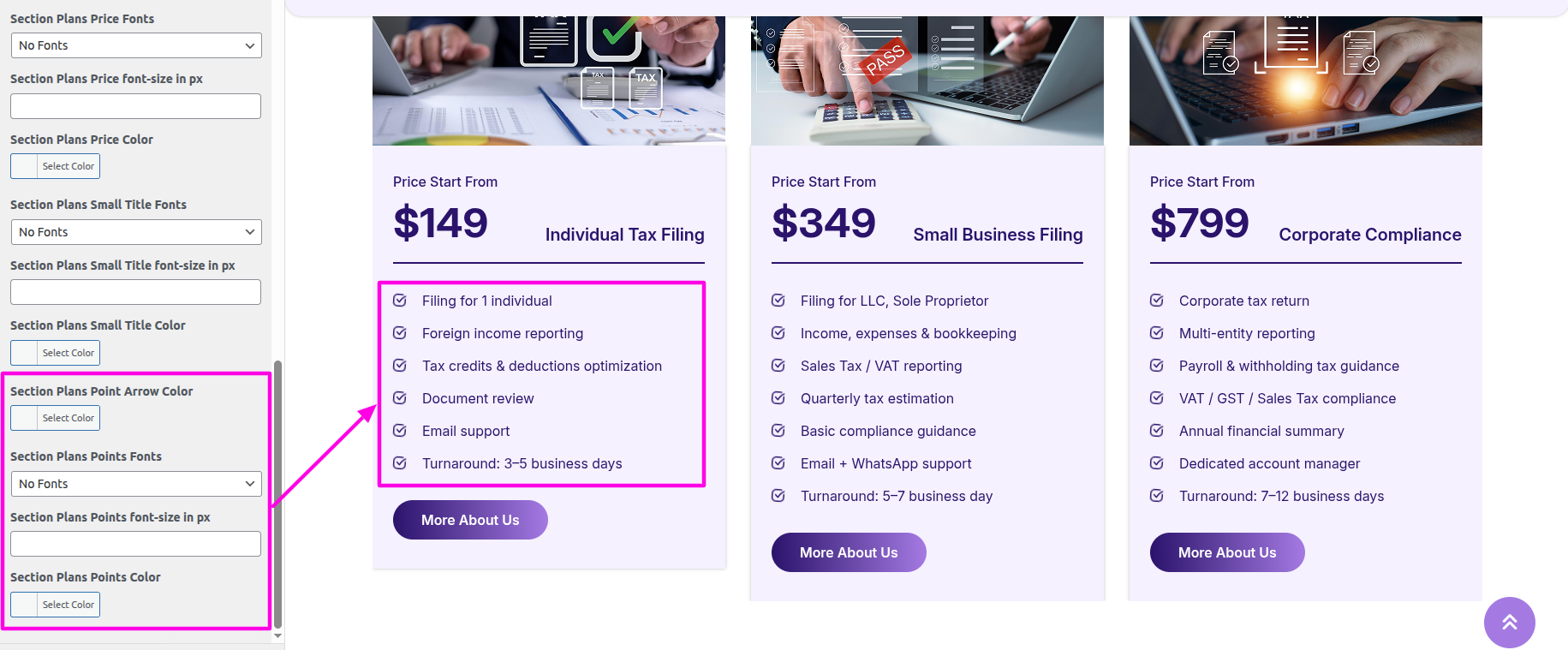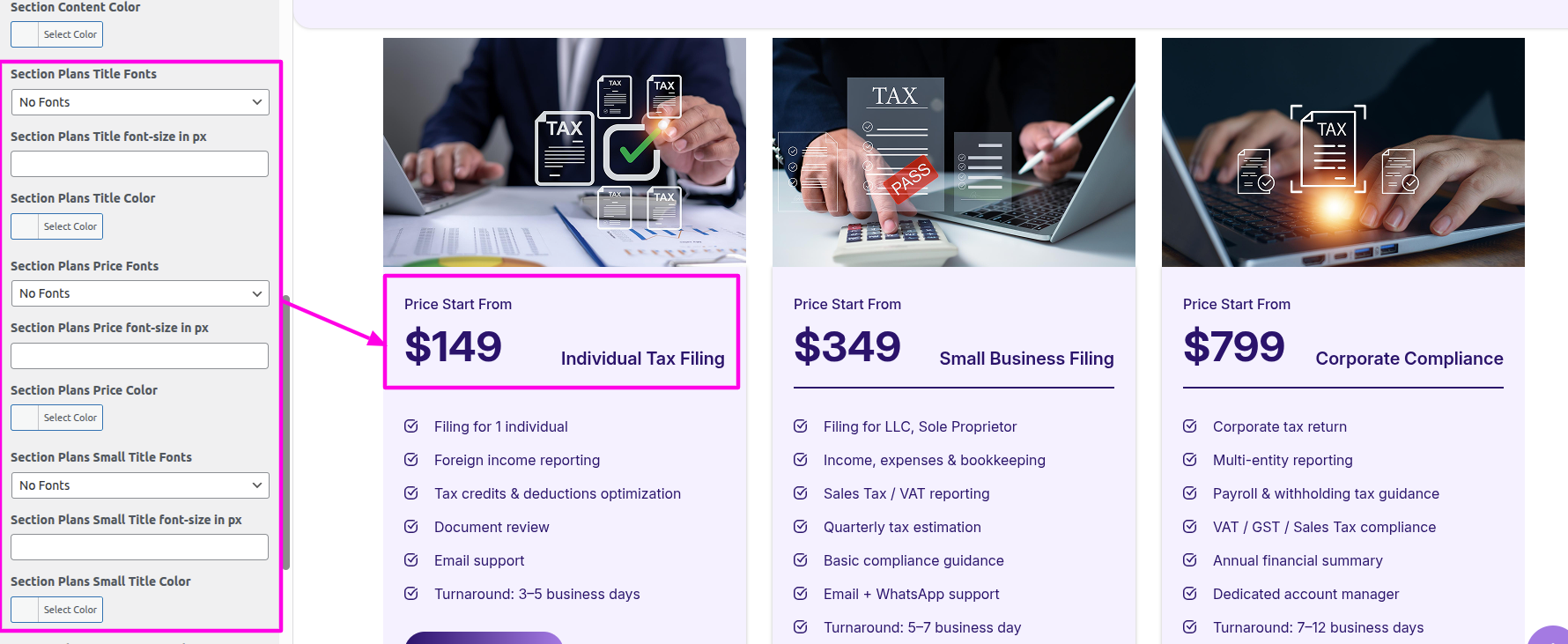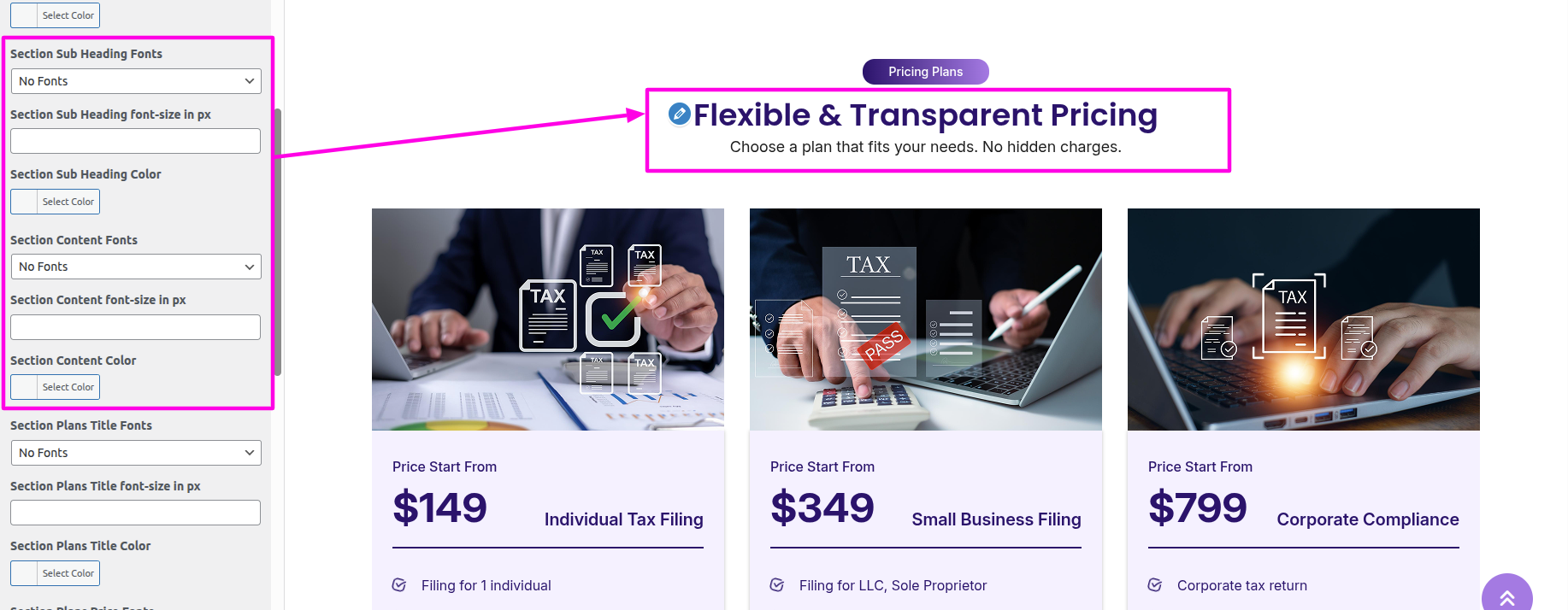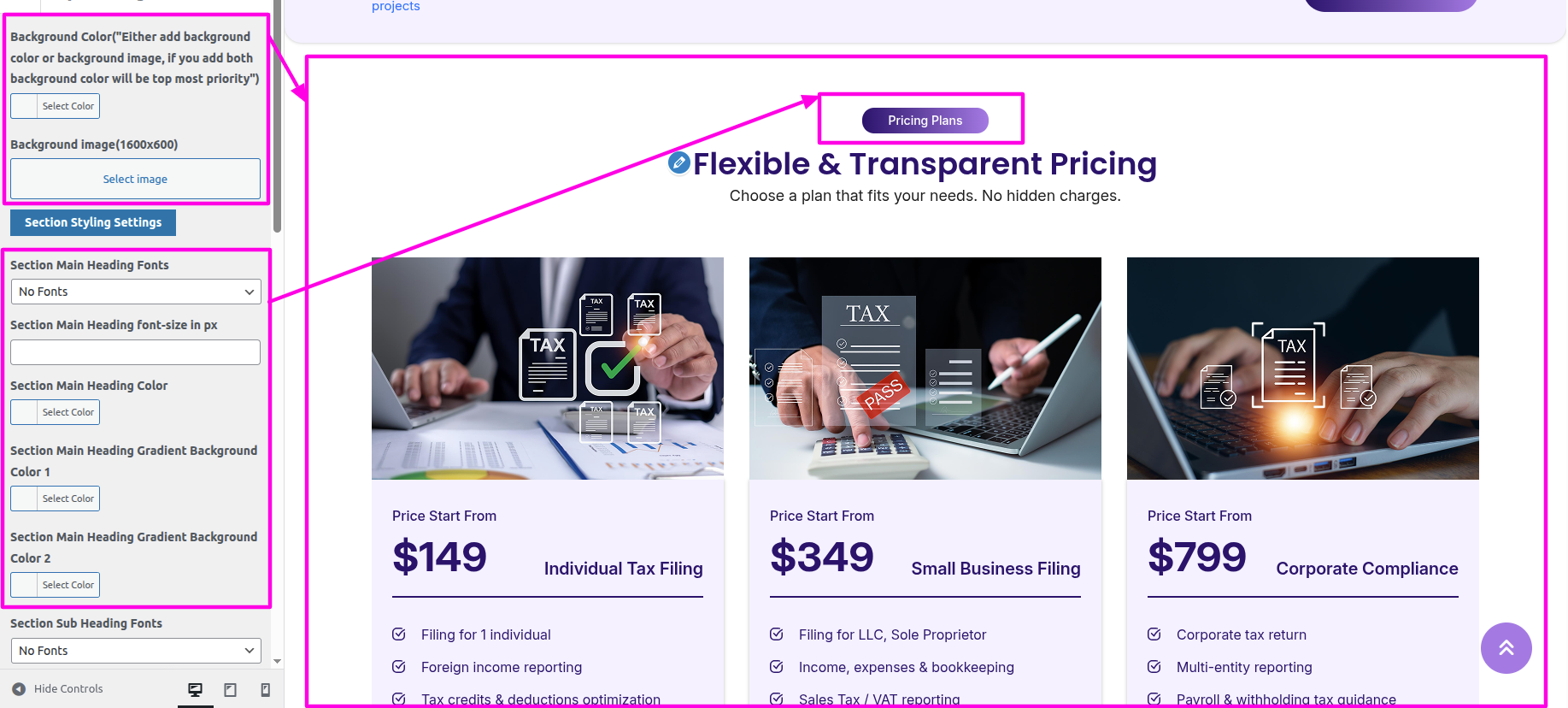 Select The Appearance → Select The Customize → Theme Settings → Pricing Plans → Style Settings