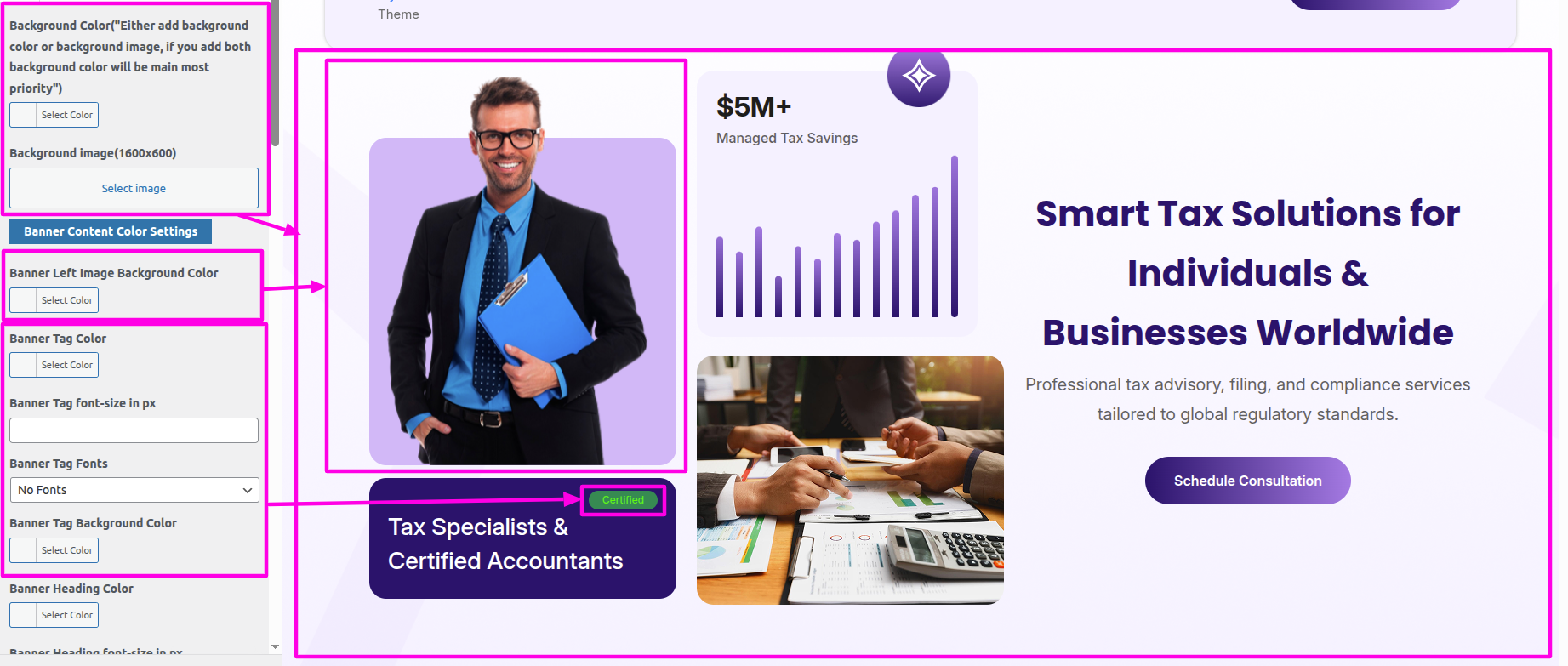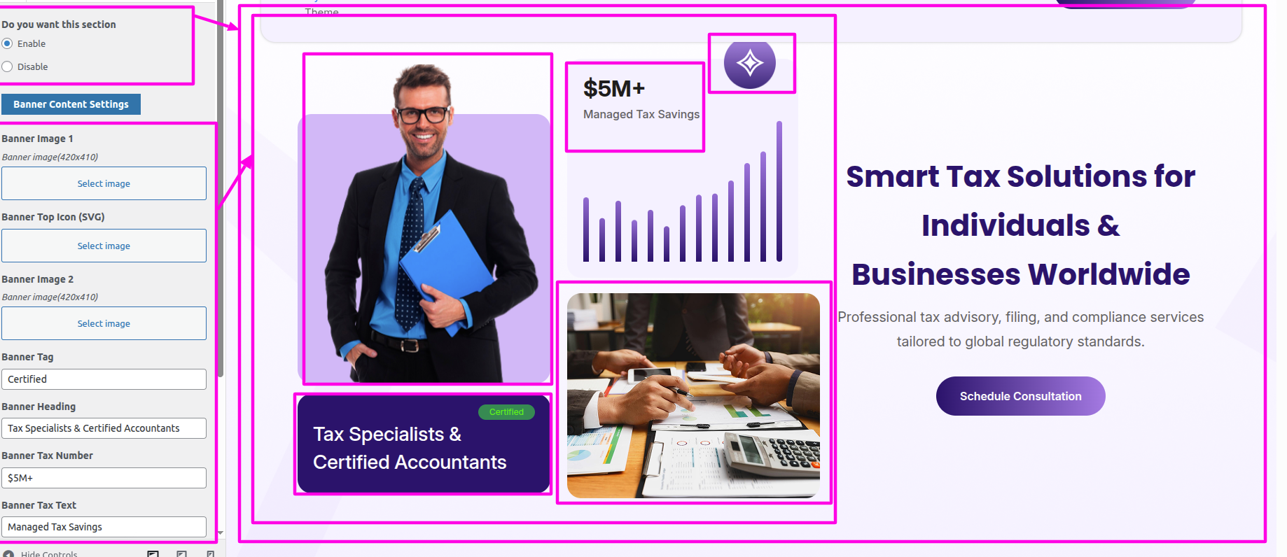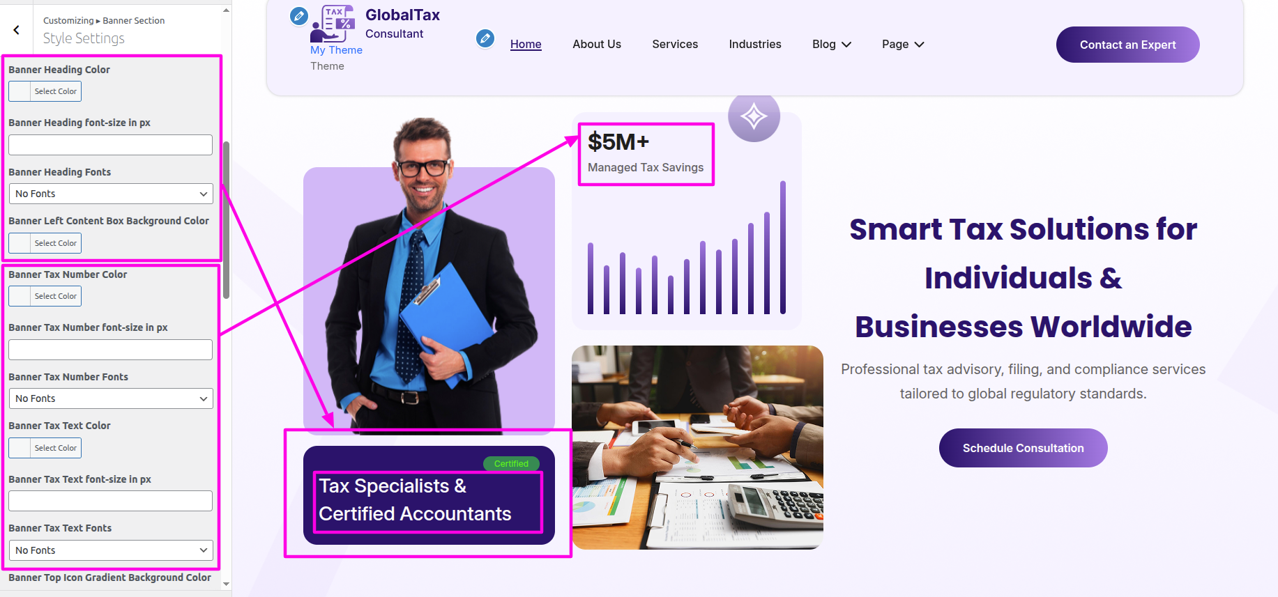 Select The Appearance → Select The Customize → Theme Settings → Banner → Text and Image Settings