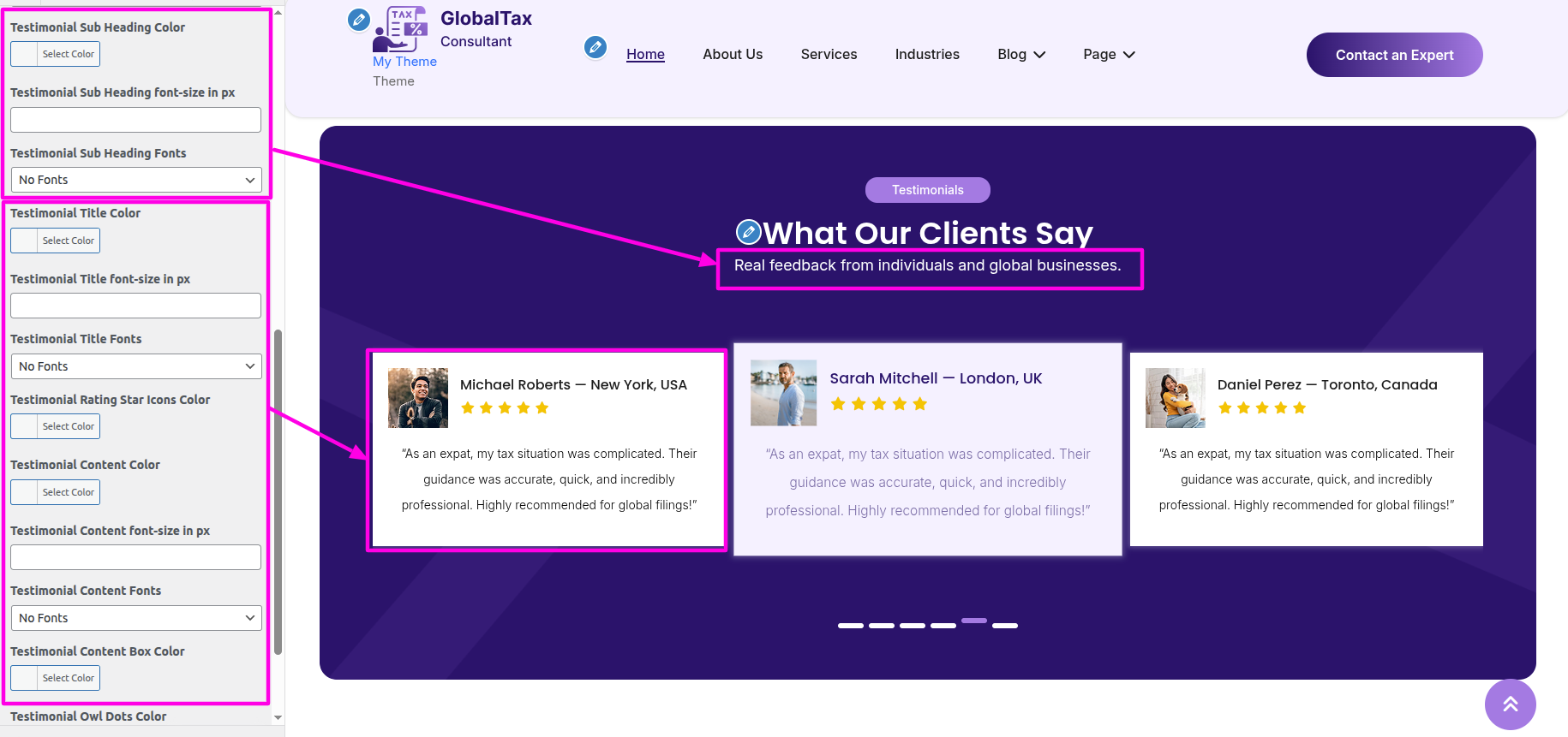 Select The Appearance → Select The Customize → Theme Settings → Testimonial→ Style Settings