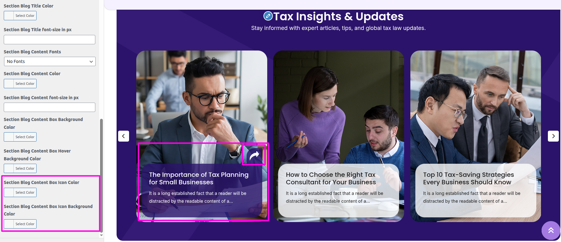 Installing and activating the Tax Consultant Pro Custom Posttype /strong> Plugin is required for the Post section. The dashboard's Post section will show up after activation.