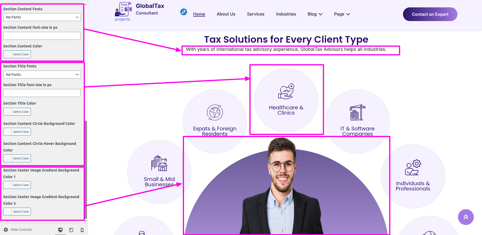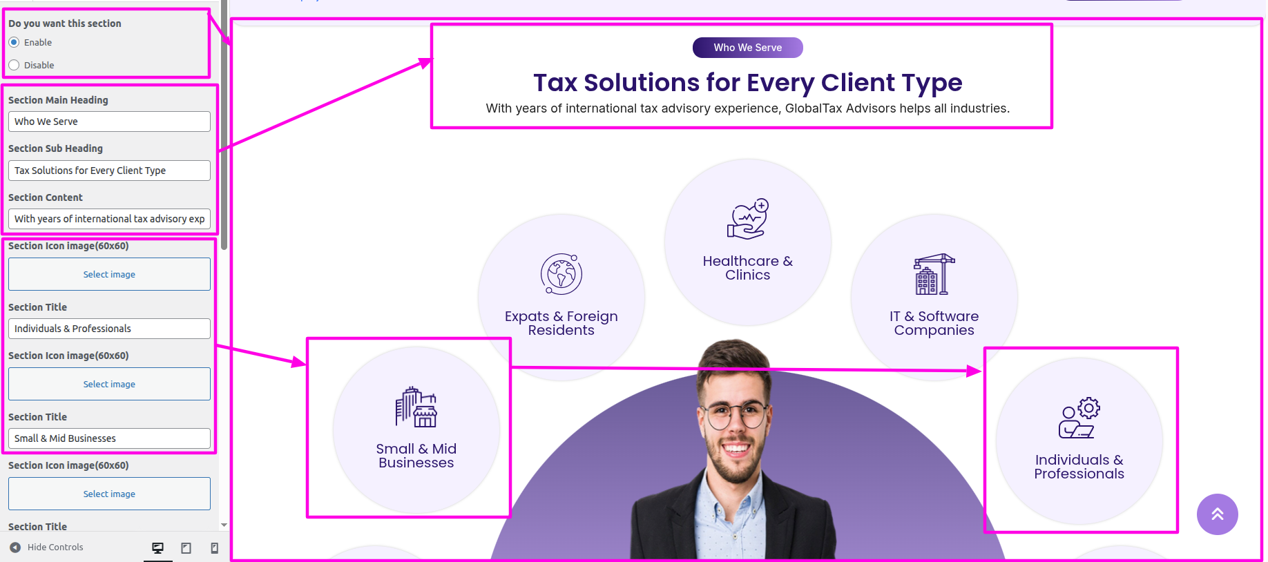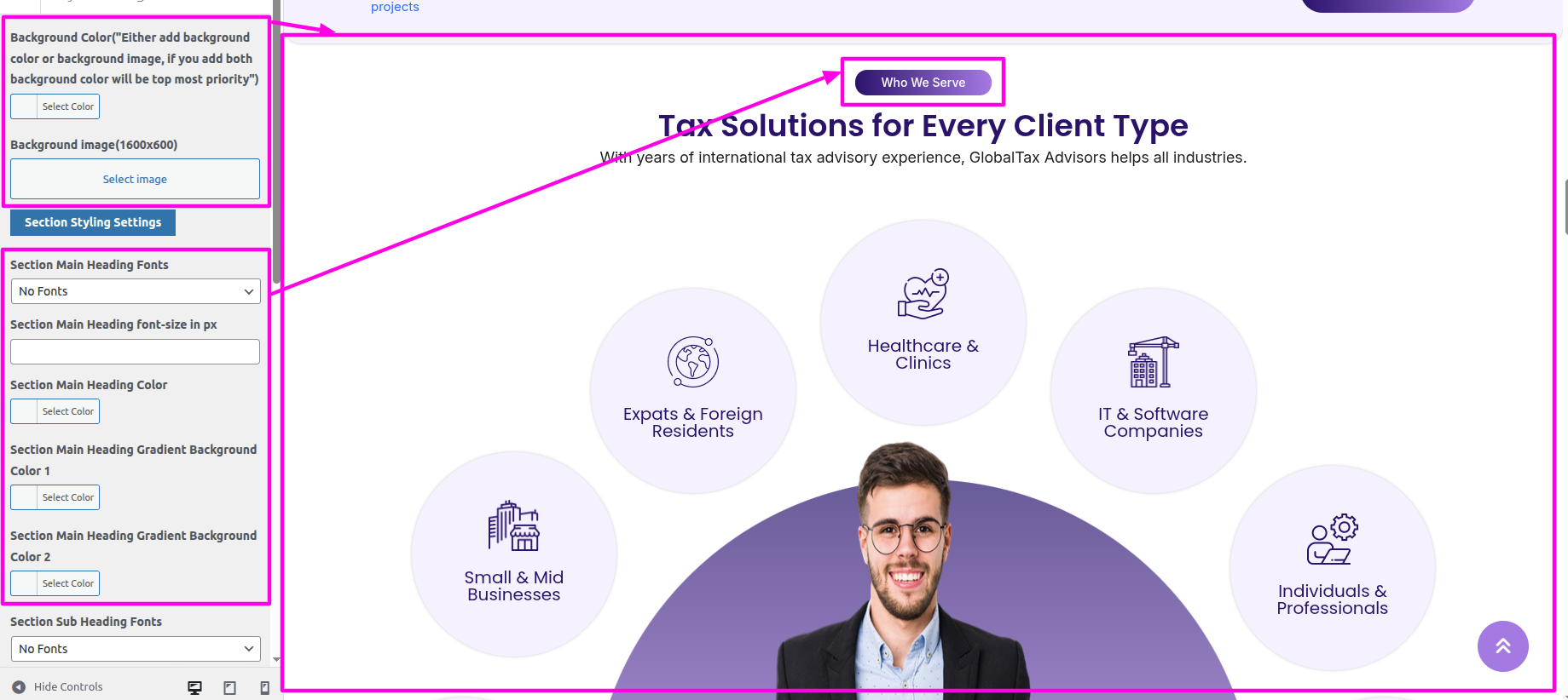 Select The Appearance → Select The Customize → Theme Settings → Who We Serve → Style Settings