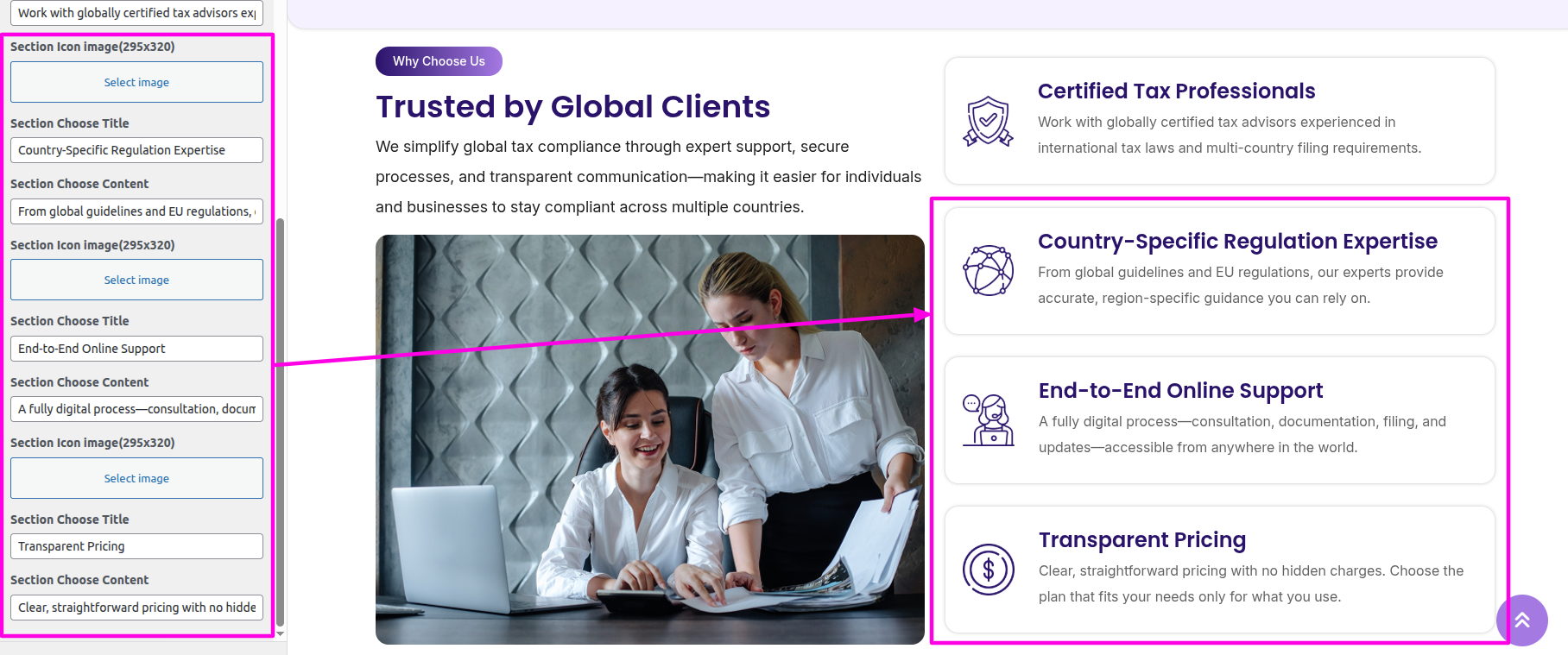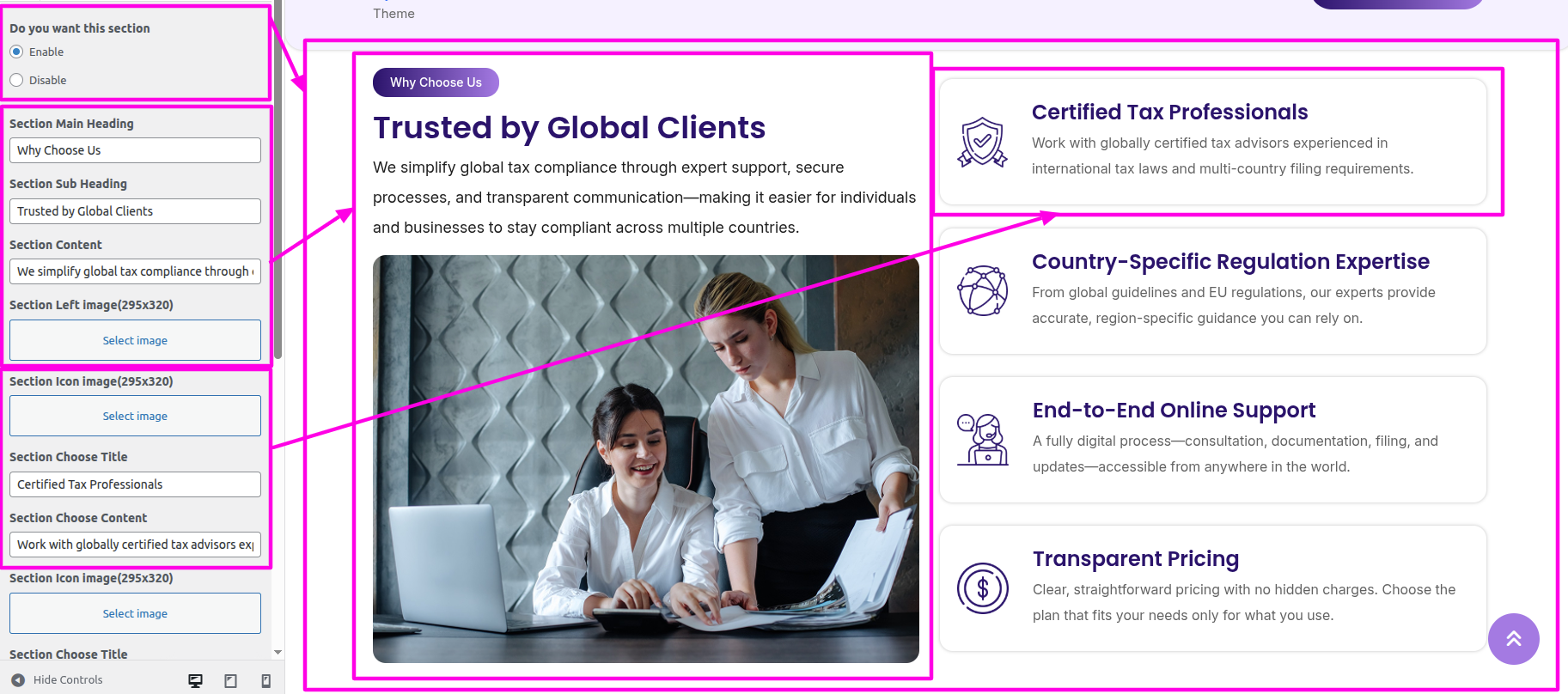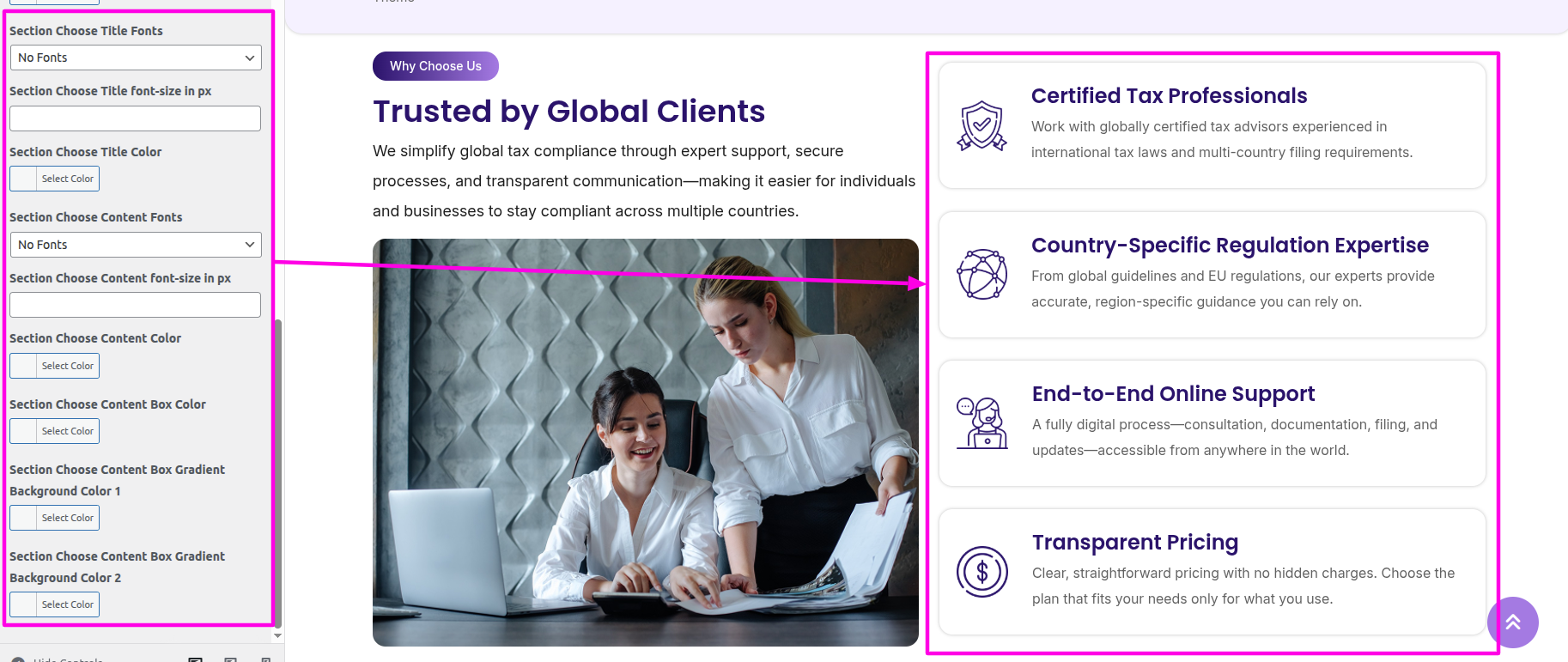 Select The Appearance → Select The Customize → Theme Settings → Why Choose Us → Style Settings