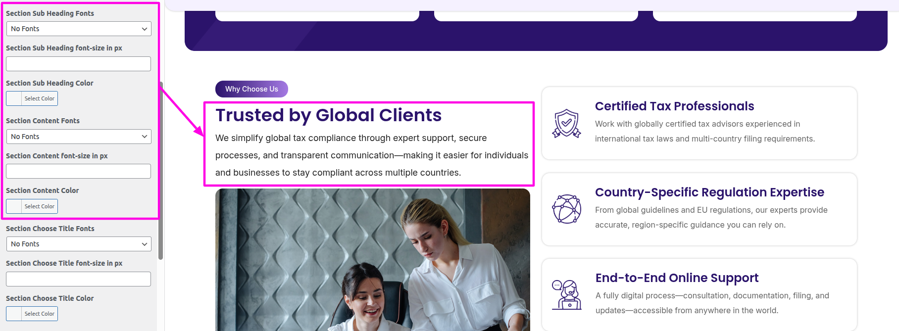 Select The Appearance → Select The Customize → Theme Settings → Why Choose Us → Text Settings
